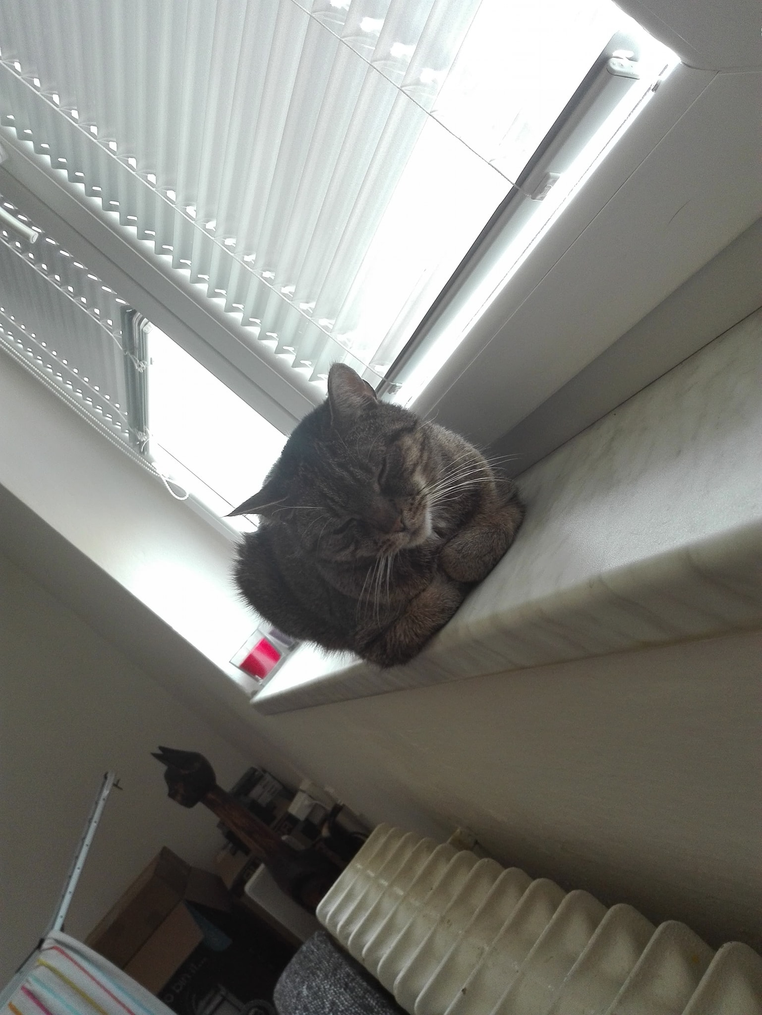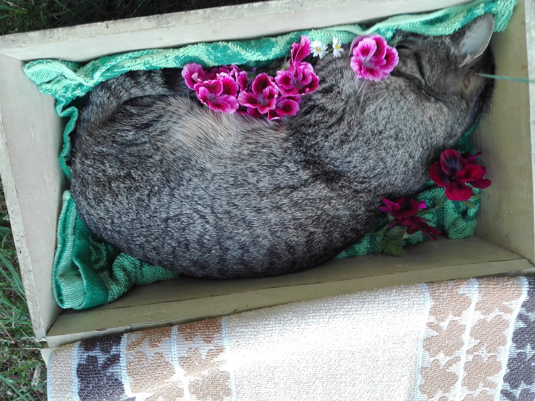 Charlie nás víceméně po tom úvodu pak už jen neustále pozitivně překvapoval, posouval svoje hranice kdy začal vylézat na jídlo, začal se chodit tulit, byl vždy opatrný ale našli se momenty kdy přišel. Důvěra k nám se u něj budovala opravdu pomalu a dlouho ale po roce fungoval jak normální kocour, který si zkrátka jen vždy hlídá svoje záda a když někdo přišel moc blízko tak poodběhl. I tato situace se ale postupem času změnila a nejraději vzpomínáme na poslední půl rok, kdy místo původního 80% života v hradu a 20% někde po bytě se to otočilo na 100% po bytě a 0% v hradu . Sám od sebe nám přišel na klín a tulil se, nejraději měl packy na ramenu a drželi jsme ho doslova jak malé dítě. Mručel a slintal a nikdy už neutíkal. V kuchyni když byl čas jídla byl dřív než Chroustík a jen co se brousil nůž na maso přiletěl, že by taky něco rád dostal. Když jsem ráno vstával do práce tak chodil se mnou do koupelny a mňoukal mi u nohou dokud jsme ho aspoň na chvíli nepomazlil. Dalo by se vyprávět opravdu dlouho, jen jsem chtěl uvést příklady toho, čeho byl ten posera jakého si pamatujete ze Sluníčka schopný, opravdu překvapil všechny. I když k nám přišli návštěvy tak neváhal a tulil se k nim, takže důvěru si tu opravdu vybudoval. Bohužel byl nemocný a tak nás opustil dříve než by měl. Bylo mu necelých 6 let, odhadované datum narození je Září 2013. Bude nám hrozně chybět,ale nikdy na něho nezapomeneme a Vám mnohokrát děkujeme za zprávu jestli si ho nechceme vzít. Jak říkám, na začátku to bylo těžké, ale byl prostě skvělej.