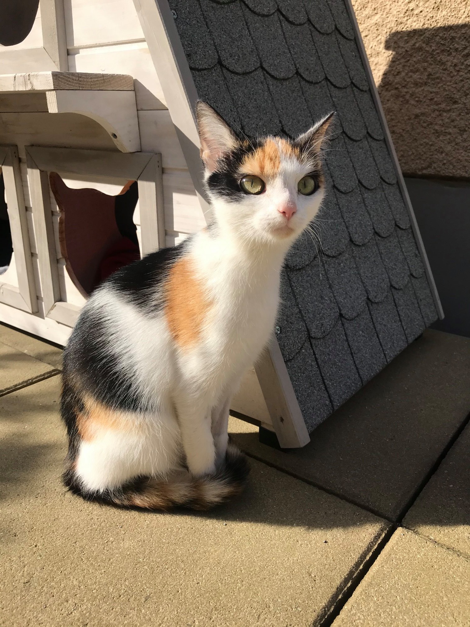 Tříbarevná kočička s exotickým kukučem. Byla nalezena, společně s jejími 4 kočičími holčičkami, v opuštěném domě na Praze 4. Naprosto vyhublá, s teplotou a průjmem. Tak jí paní veterinářka nasadila anbitiotika a do týdne bylo po průjmu i teplotě. Nicméně i přesto se o svá koťátka starala tak perfektně, že ta jsou naprosto v pořádku. zdravá a připravená dobývat svět i lidská srdce. Piškotka je sama v podstatě ještě kotě, nemá ani rok. Je ještě pohublá (po kojení), ale chutí k jídlu, kterou má velikou, z ní bude za chvíli krásně rostlá kočičí dáma. Svou dočasnou paničku si neustále hlídá, otírá se o ni a je vděčná za vše. A kdybyste slyšeli to vrnění, není větší terapie než ten úžasný zvuk, který Piškotka vydává.