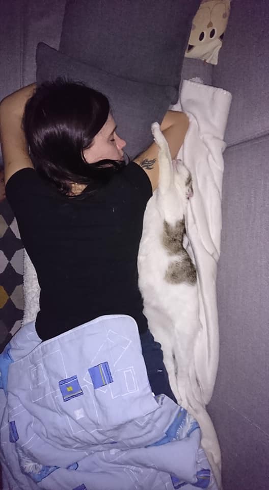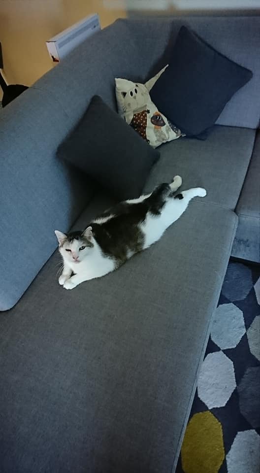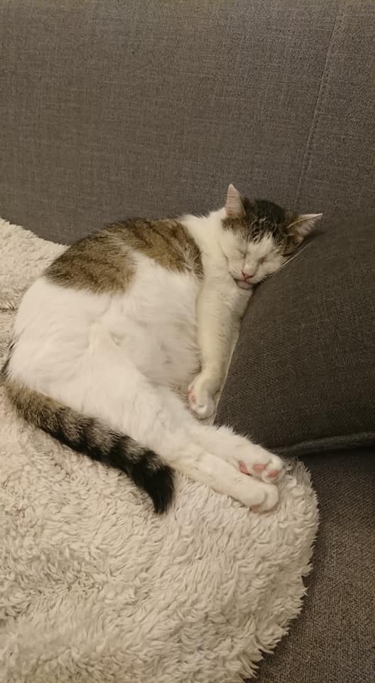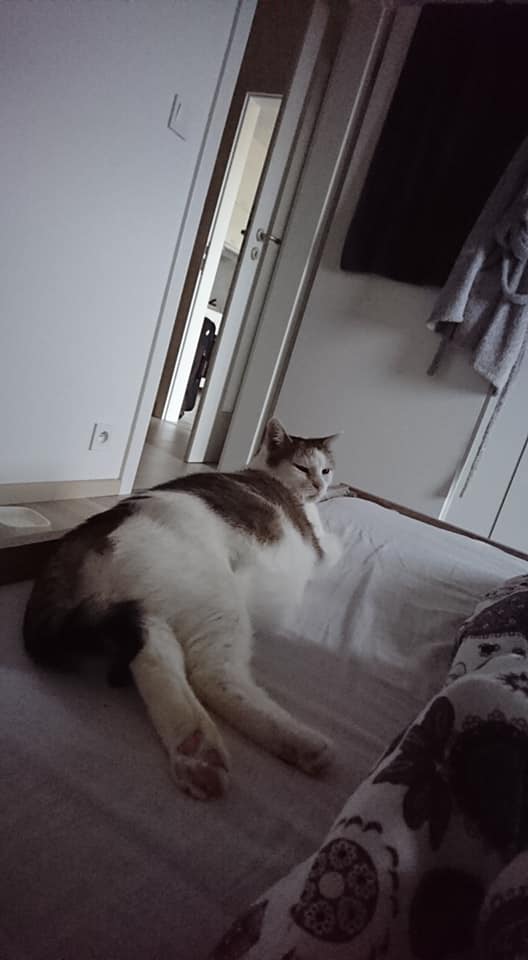 Jinak si Dášenka krásně zvykla u nás. Je neskutečně mazlivá a vděčná kočička. Spinkání v pelíšku pro kočičky ji nezajímá, ona raději na gauči nebo ještě líp rozvalená v naši posteli .