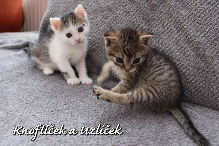 Naši bezva bráškové Uzlíček a Knoflíček už také netrpělivě vyhlíží své nové rodiny. Nejraději bychom byli, kdyby šli kluci do nového domova společně. Je to bezva dvojka! 🙂 Kluci jsou sice ještě na lahvičce, ale už si sem tam dají nějakou tu masíčkovou mňamku, takže už brzy budou zcela připraveni dělat radost někomu moc hodnému! No nejsou to krásní kocourci?