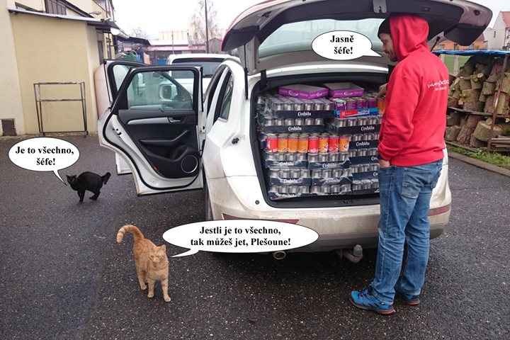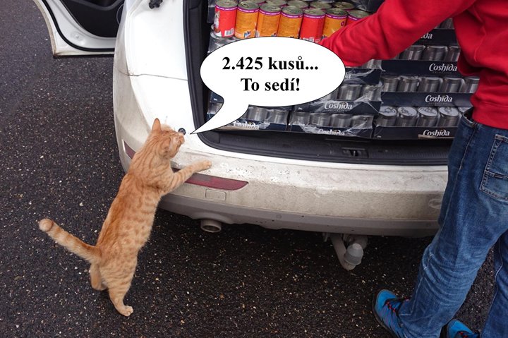 2425 kusů 400g konzerv, 970 kg jídla pro kámoše z Kočičího Domova Sluníčko, Spolku na ochranu zvířat Litoměřice a další venkovní kolegy! 🙂