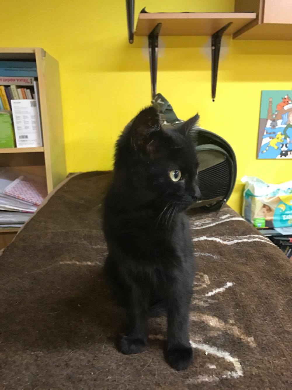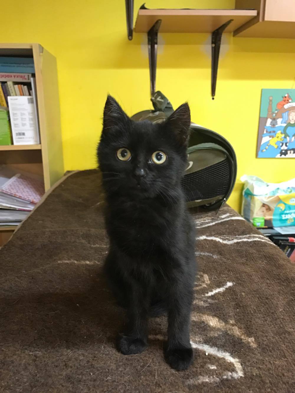 Černá kočička odchycená u domova důchodců v Krabčicích. Kočičky jsou tam nechtěné a hrozí jim usmrcení.