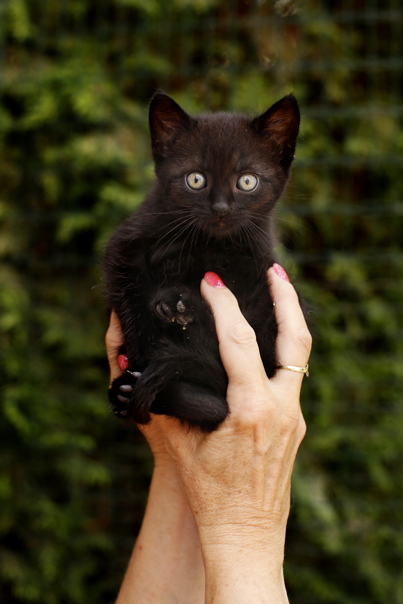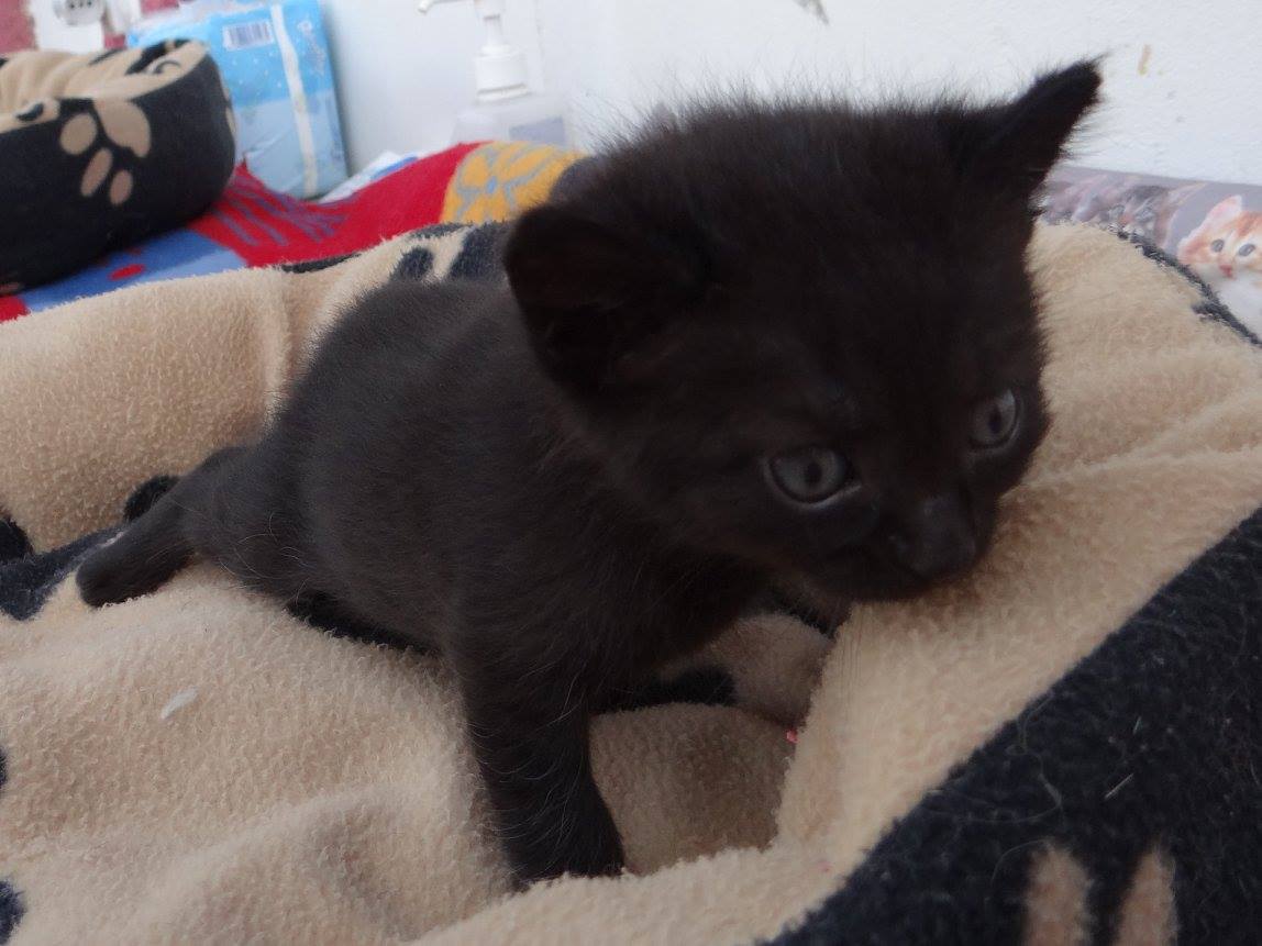 Černá kočička, která se k nám dostala se svou maminkou Yzinkou a sourozenci Badynkou, Kaštánkem a Budulínkem. Koťátka se narodila v Roudnici n.L. u holobytů, kde máme kolonii vykastrovaných 21 kočiček. Jedna kočička byla špatně vykastrována, rodila nadále koťátka až do loňského podzimu, kdy se jí konečně i s koťátky podařilo odchytit a kastraci opravit. Loňská, jarní koťátka se nám však nepodařilo najít a tahle maminka je jedním z nich. Ještě je tam její bratříček. Měli jsme veliké štěstí, že kočička porodila do polystyrénové boudičky a byla u koťátek zatím úplně pořád. Paní, která kočičky krmí to zjistila a povedlo se kočičku i koťátky dopravit do Sluníčka.