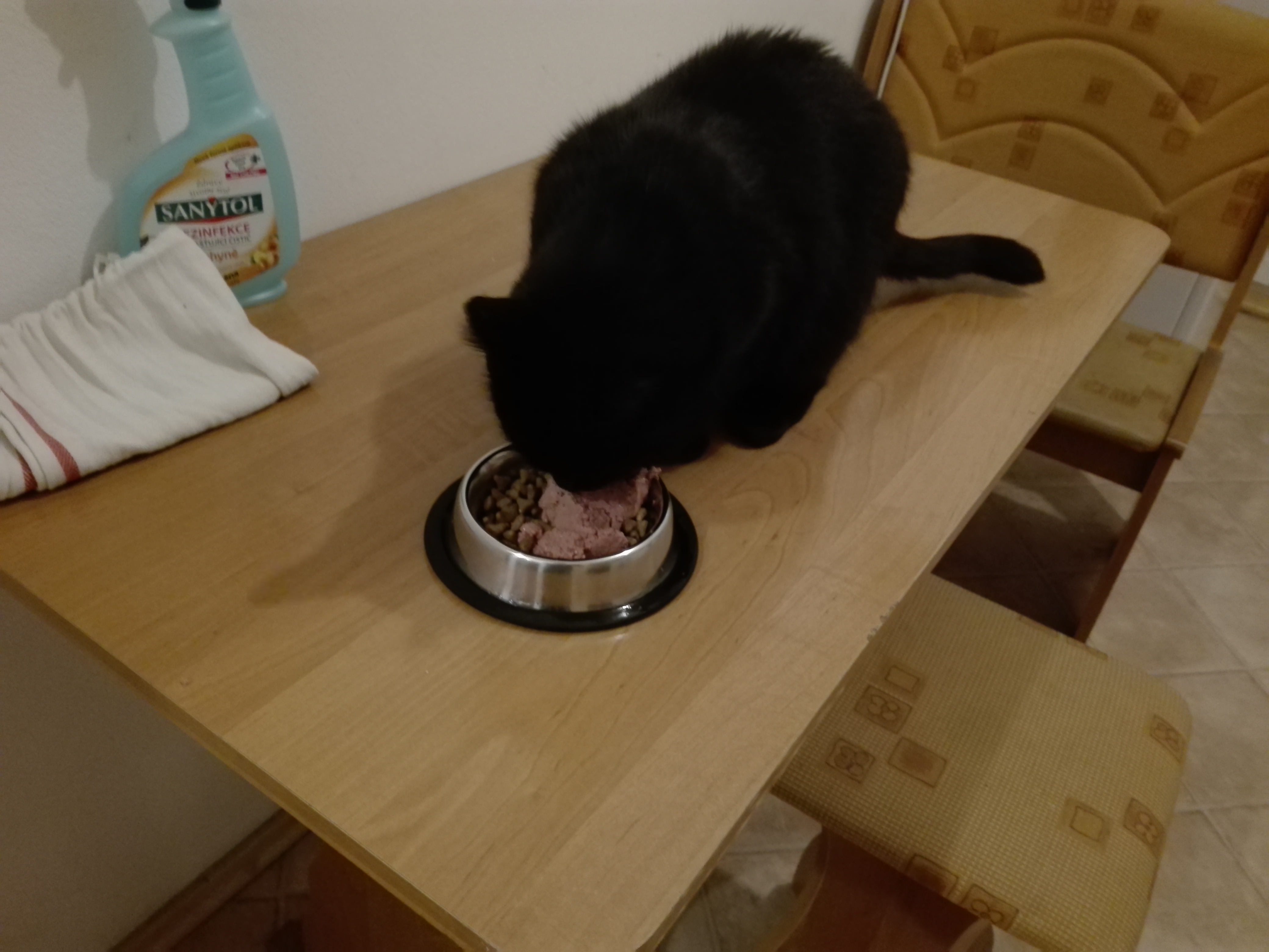 Nelsonovi se daří moc dobře, ze začátku byl plachý a rád si zalezl na odlehlejší místečko, ale už si zvykl a večer se přitulí do klína nebo skáče v noci do postele. Moc rád baští paštičky co jsme mu nakoupili, někdy mě ani nenechá vrátit mističku na místo, jak se na ně hned vrhne. Má teď oblíbené místo u okna, kde v krabici odpočívá nebo z okna vyhlíží co kde lítá. Je to moc hodný a vděčný kocourek.