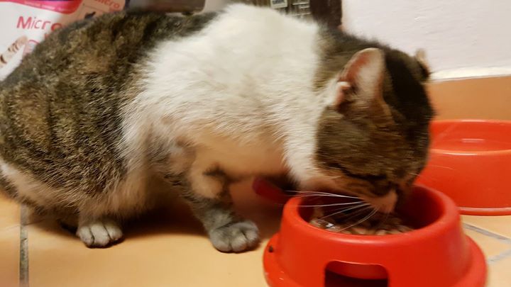 No a toto je roztomilý, asi tříletý kocourek Ouško z Úštěka, patřící ke skupince koček – Krasomila a Janek. Je sice příšerně špinavý, ušmudlaný jako nějaký horník, ale dobře živený. Během dnešního dne určitě zhubl, což mu není na závadu, když vykakal hromadu škrkavek. Je po kastraci, kterou zajistil spolek Spolek na ochranu zvířat Litoměřice, stejně tak i u ostatních kočiček z Úštěka. Ouško je mazlivka a velice kamarádský ke všem živým tvorům.