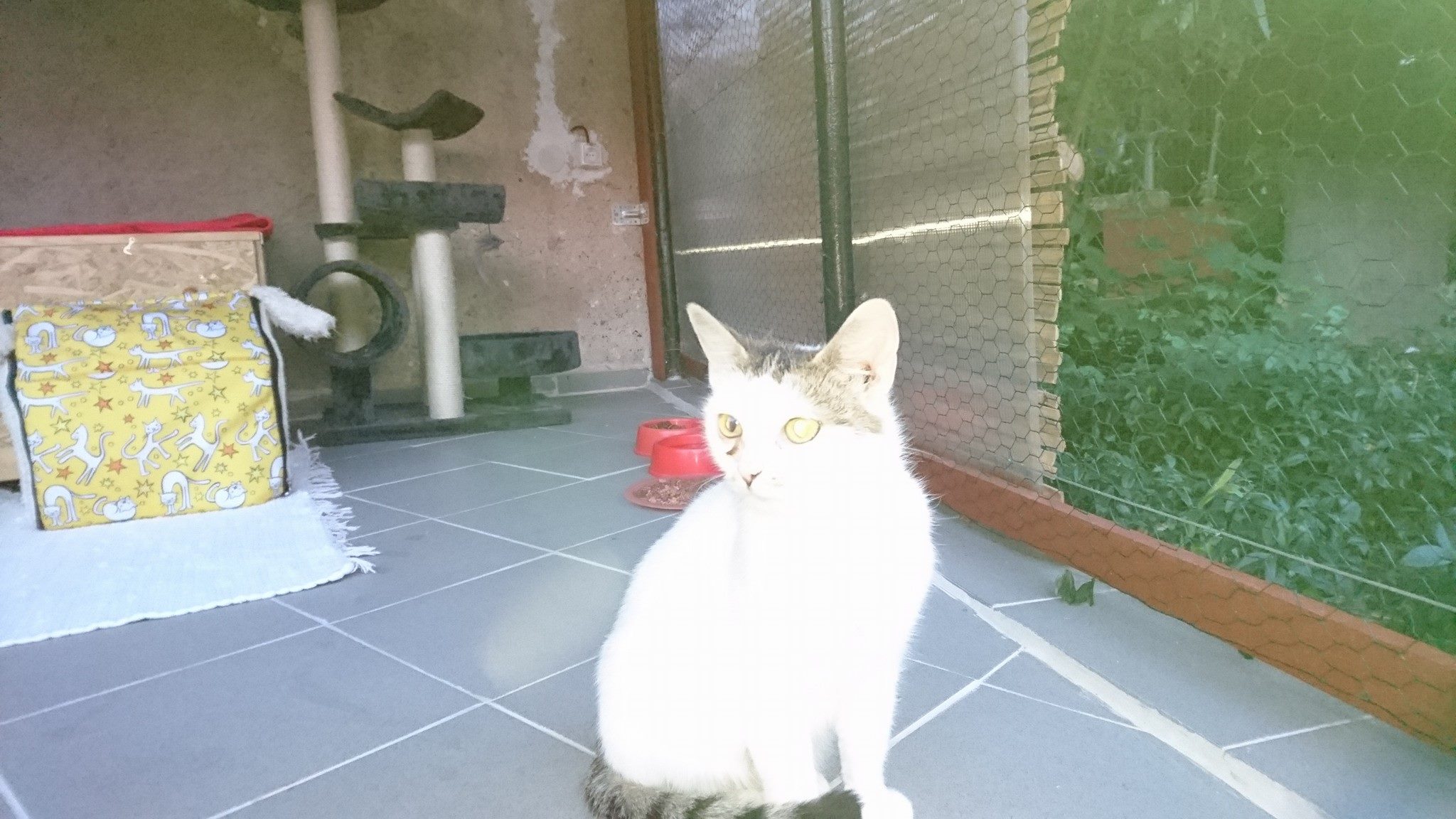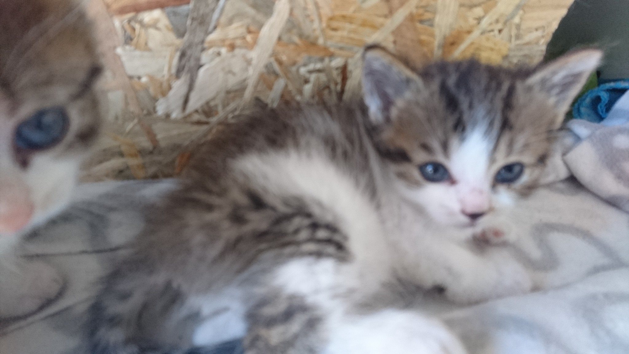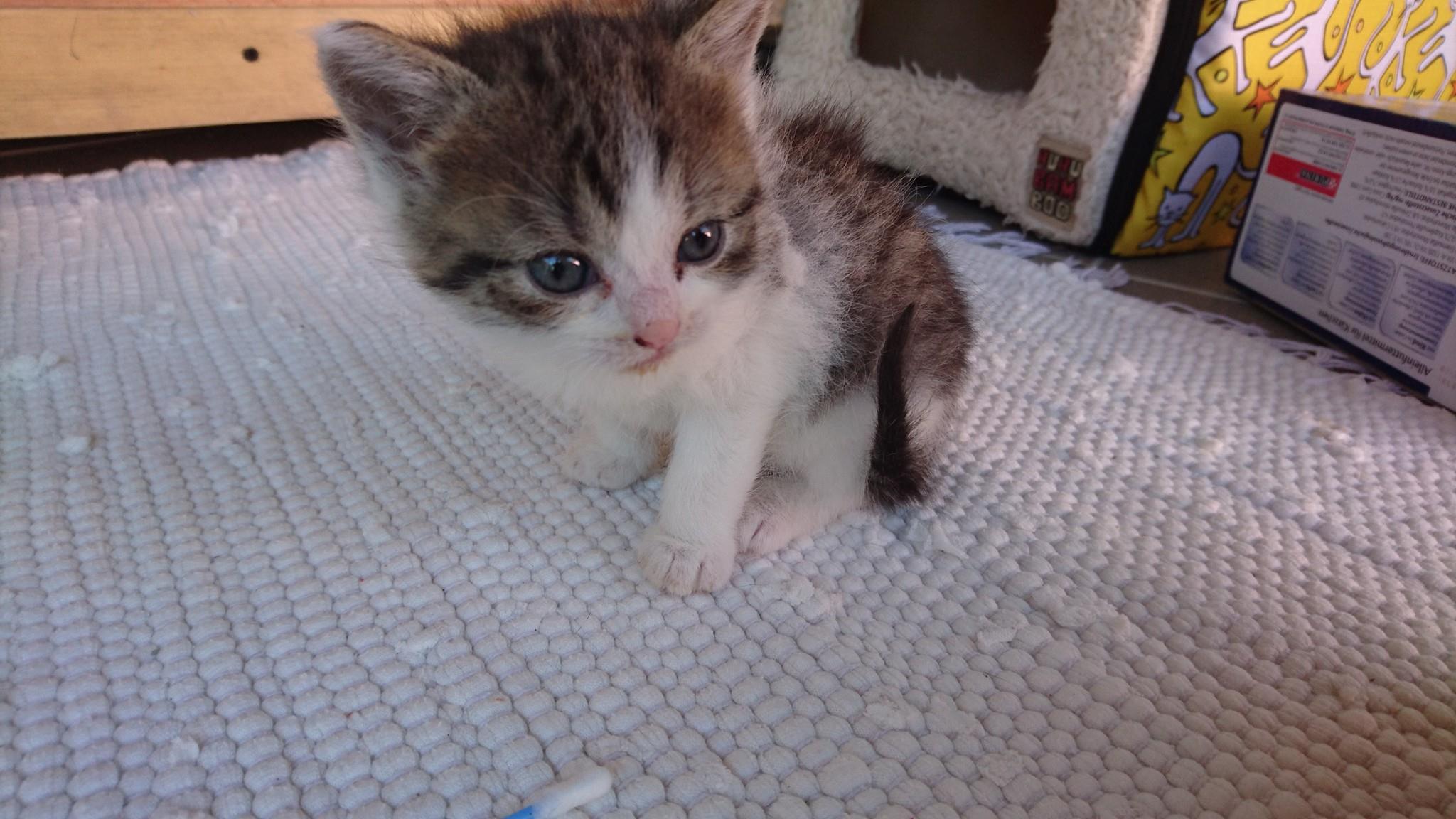 Nově přijatá čtyři koťátka s maminkou z jedné vsi, kde tři koťátka byla odsouzena ke smrti, nebyl o ně zájem, pouze jedno koťátko mělo mít novou rodinu. Zachránila je jedna kočkomilka, které se nakonec podařilo dostat od majitele i kočičku se čtvrtým koťátkem. Koťátka však onemocněla, bezvládně ležela a třásla se a tak se obrátila na Sluníčko s prosbou o pomoc. Jedná se o tři holčičky – černobílou Dianu, bílomourovatou Kate, bílomourovatou více flekatou Charlotte, bílomourovatého kocourka Williama a bílou maminku Pipe s tmavými fleky. Po příchodu k nám jsem viděla, že koťátka mají horečku, což skutečně tak bylo. Dále mají ouška plná svrabu včetně maminky, která má i hodně tekoucí očička. Byla jim píchnuta antibiotika. Dnes dopoledne měly horečku všechny čtyři koťátka. Je jim zhruba kolem pěti týdnů, jsou to mazlivky a za plotem voliéry se domáhají přítomnosti člověka. Koťátka váží od 340 do 430 gramů. Úplně nejmenší je kocourek William a kočička Charlotte. Snad tu váhu brzy doženou.