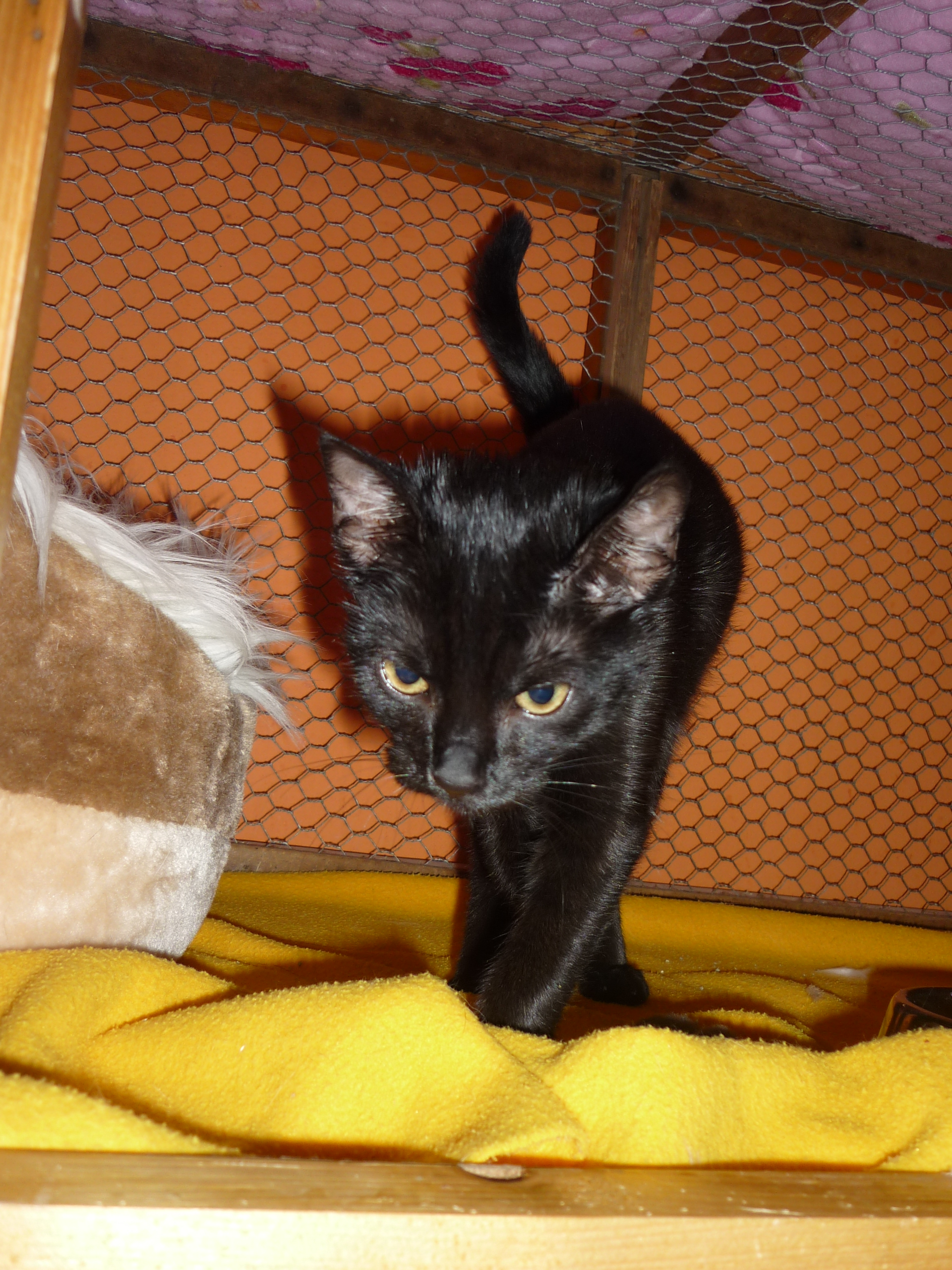 Dnes ráno v zahradě Zahradnictví a květinářství EDEN u ulici Alej 17. listopadu (naproti Tesco) se našla malá asi 3-4 měsíční černá kočička. Byla umístěna u nás ve Sluníčku, je mazlivá, není nijak vyhublá, má svrab v ouškách a dostala jméno Miley, protože pořád „zpívá“, nelíbí se jí v karanténě.