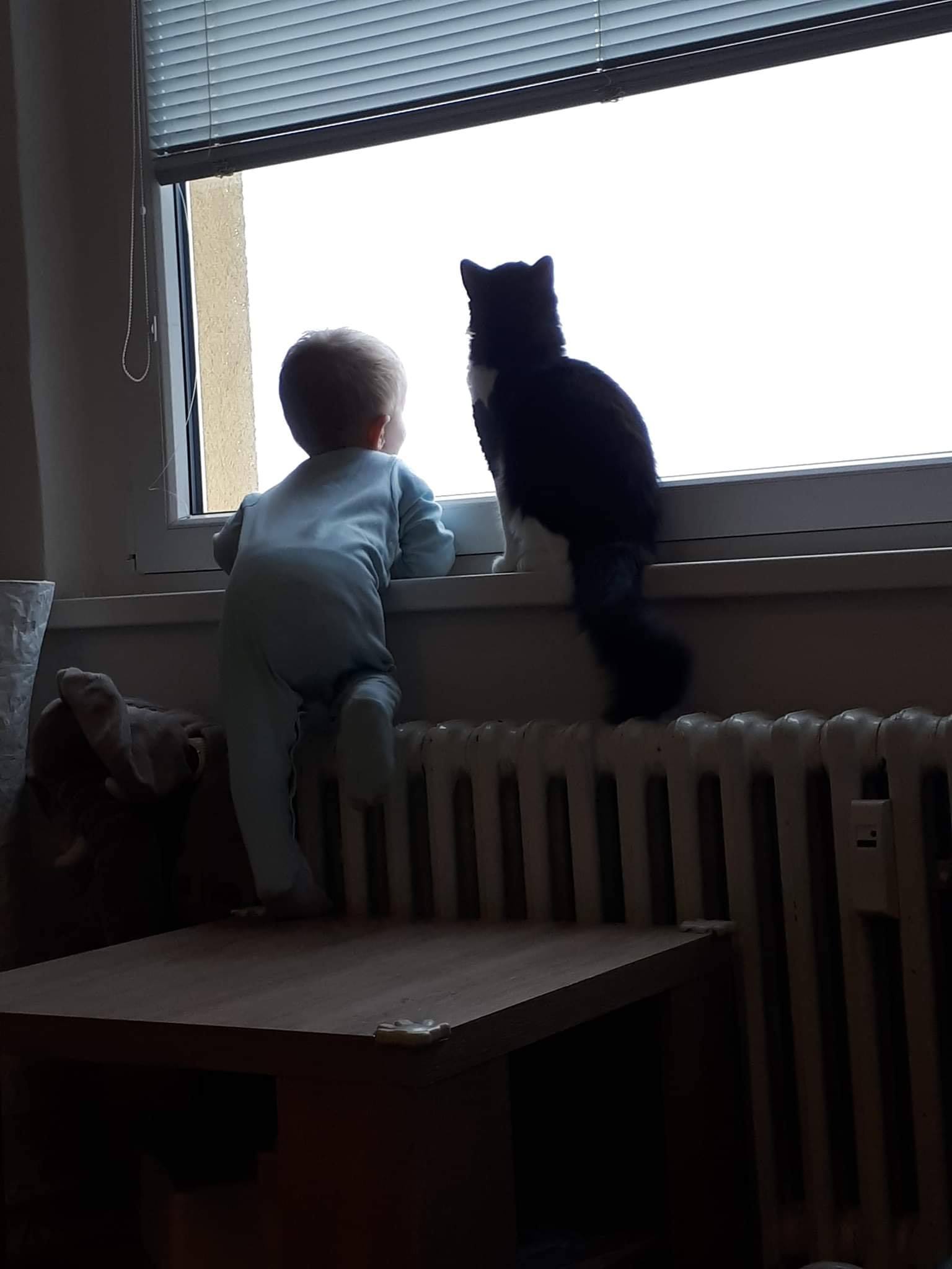 OČKO v novém domově už dlouho THEO 🐈 THEO je miláček ❤️ a rád se válí nebo s malým dvounohým kámošem pozoruje dění za oknem 😀 Posilame pozdrav do slunicka 😍 Muj maly velky rozmazlenec 💙