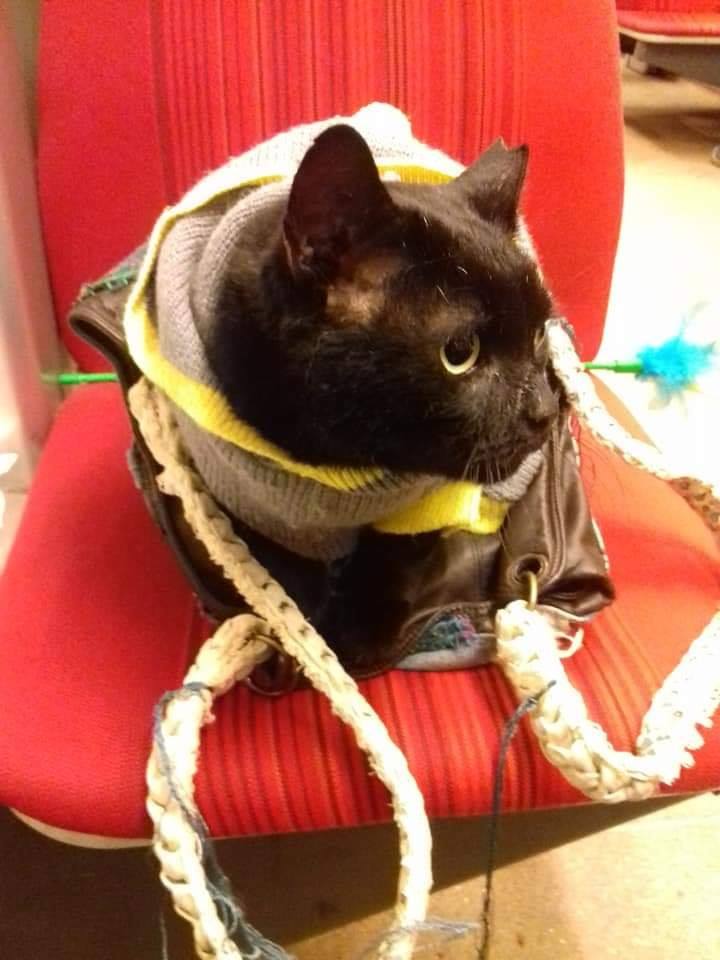 🔸 Poznáte o jaký dopravní prostředek jde?🔸 Buldoček je kocour cestující s paničkou a jeho psími přáteli, také z útulku, běžně v MHD. Ještě má doma kočičí kamarádku. Teď si pomalu zvyká a společně s paničkou vychovává nového psího kamaráda.