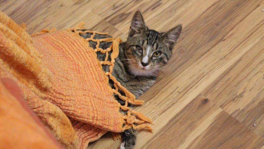Dráček je kočičí klučík, který mě trochu komplikovanější příchod na svět maminkou Perlou ve Sluníčku. Prochází si léčbou očiček. Jako jeho bráškové i on je hravé a zvídavé kotě. Dráček má jedno očičko „postižené“ rýmou, ale v ničem mu to nebrání a vidí na něj a hledá hezký domov.