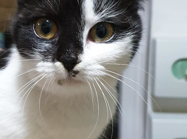 Drobná bílo černá kočička Inéz. Přišla k nám z lokality kde kastrujeme. Dostala trochu exotické jméno, které se hodí k jejímu neobvyklému vzhledu. Kočička je mazlivá, ale trošku svá. Zkrátka má názor 🙂