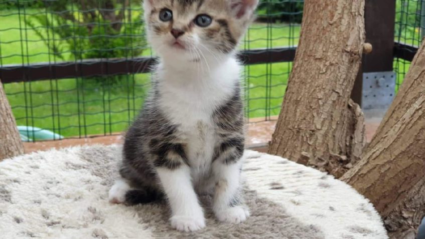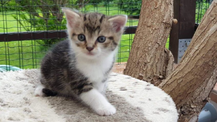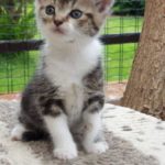 Malý kočičí klučík Křišťálek k nám přišel s maminkou Violetou a dvěma kocouříma brášky. Křišťálek zatím na nás syčí a snaží se pouštět strach, ale nikdo mu to nevěří. Je to malá neposedná bleška. Je ho plná voliéra, neustále se všichni tři škádlí a pak se rádi zase schovávají pod maminčiny „sukně“.