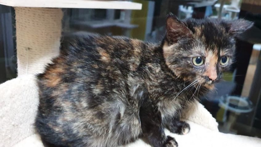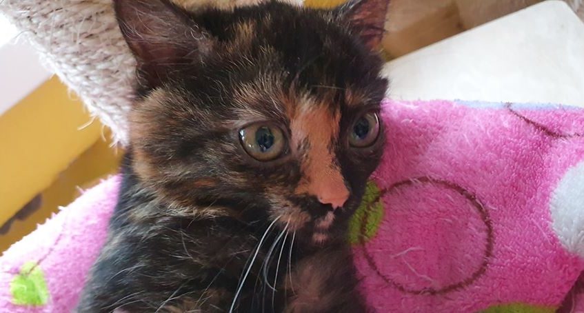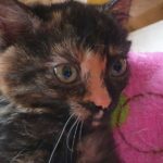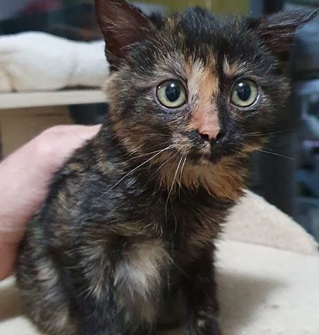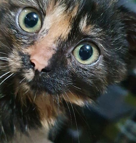 Želvovinové koťátko Lýdie, k nám bylo přijato se sestřičkou Lívií. Obě byly při ze začátku maličko bojavé. Obě kočičky se přitoulaly na dvůr v obci Černoučku, kde zůstávaly.
