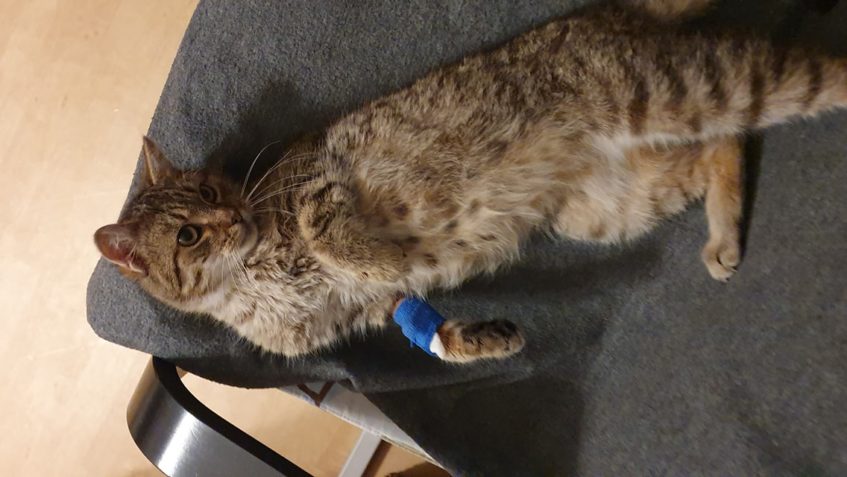 Vzali jsme Pajdu na důkladné vyšetření a rentgen neprokázal žádné poškození svalů nebo kostí. Podle všeho se Pajdovi zadní nožky občas rozjíždí v důsledku poškození nebo problémům s CNS. Ty mohly být způsobeny v kotěcím věku prodělanou infekcí. Kocourek měl špatné některé zuby, které mu byly v narkoze při kastraci vytrženy.