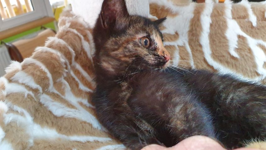 Krásná želvinka Šantička byla nalezena jak se osaměle potuluje mezi paneláky v Roudnici. Z této oblasti máme již několik koťátek. Je zatím troche vykulená a ostražitá, ale brzy se s ostatními koťátky spřátelí a bude si užívat hrátek a dovádění.