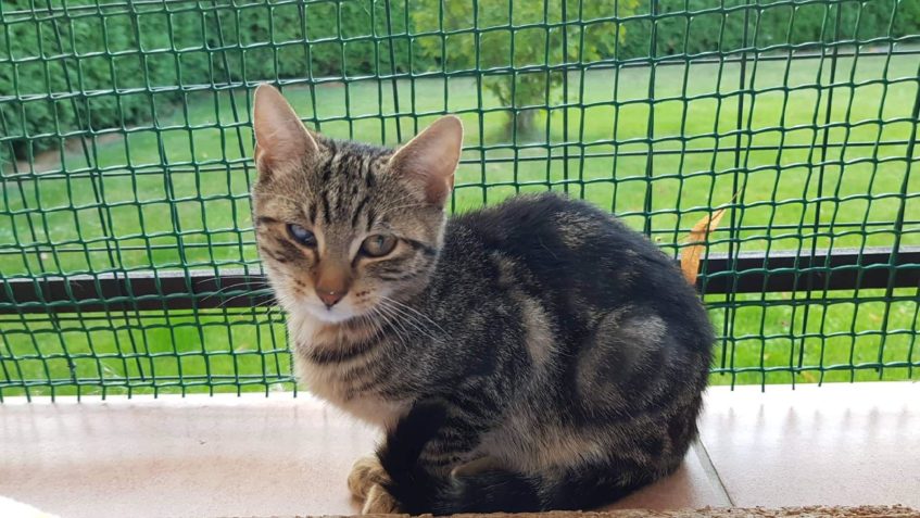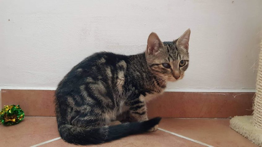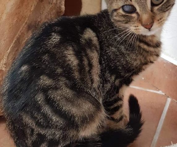 Má krásnou mramorovou kresbu. Očičko je již stabilizované, je trvale poškozené. Je to milý kocourek, který si u nás zvykl a má rád už i lidi. Bude klidným společníkem, který Vás bude nezištěně milovat a zahrnovat láskou a pozorností.