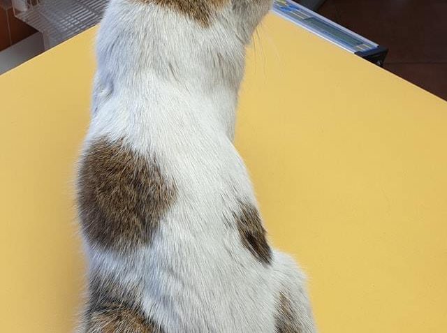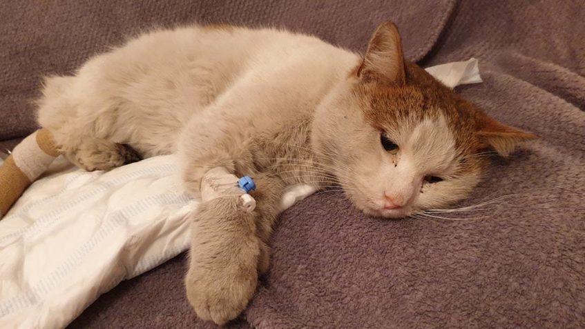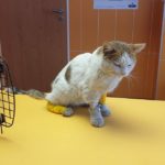 Kocourek Vikomnt, k nám přišel od železáren s velikým úrazem na zadní tlapce, z rány je vidět až kost. Vůbec jsme nechápali jak s tímto mohl žít. Je to starší kocourek, který bude vděčný za pozornost a laskavou náruč. zatím jej však čeká delší cesta uzdravování a poté rekonvalescence. Jeho kožíšek je v současné době zanedbaný a v pravdě připomíná špinavé montérky. O to však bude zřetelnější jeho proměna.
