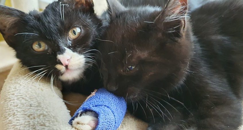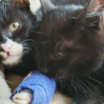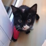 Malý černobílý kocourek Závorka k nám přišel zraněný se skalpovanou kůži v podpaží a strženou srstí podél tělíčka. Na hlavičce měl krvavou ránu a v ouškách svrab. Narozen je zhruba na konci srpna, při příjmu vážil jedno kilo. Byl nalezen zmatený v místě trati, kde jsou závory u Glazury v Dobříni.