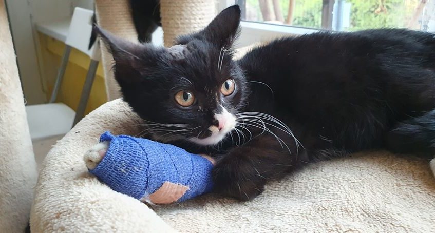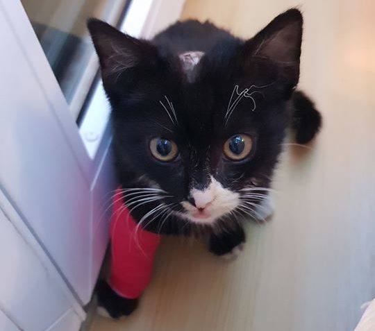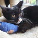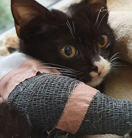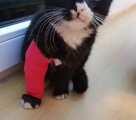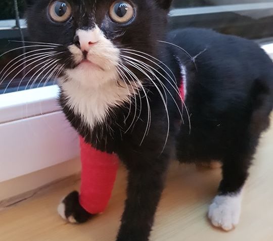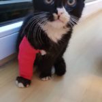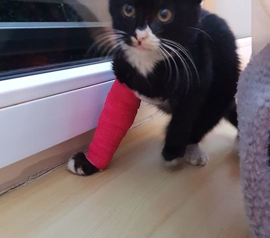Závorkova nožička vyžadovala denní převazy a ošetřování. Vše zvládal bravurně, je to moc trpělivý a miloučký kocourek. Bohužel se ukázalo, že má nožičku take zlomenou.