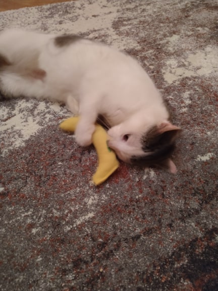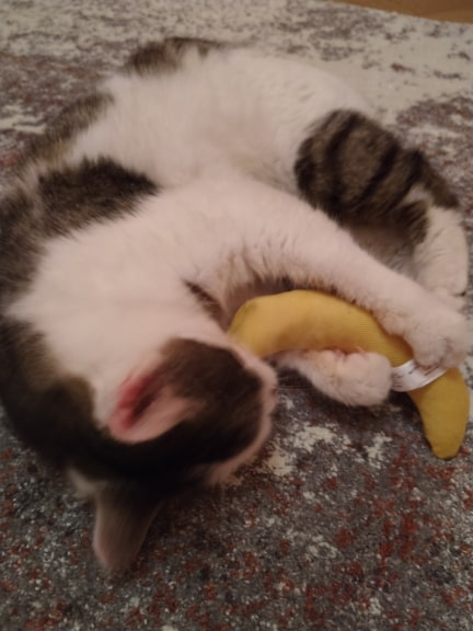 PIZZERKA 🔸Krásný pozdrav z nového domova přišel od bojovnice Pizzerky. Jejím soupeřem se stal banán😻