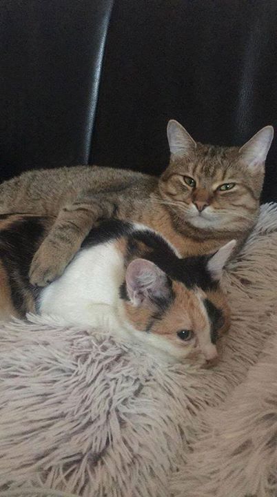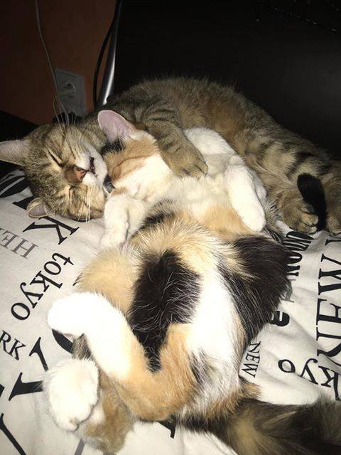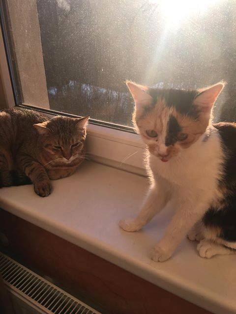 Plachá bílomourovatá Sluníčková Píšnička, nyní mazlivá Francesca a tříbarevná Andromedka, nyní Lili, se mají krásně: