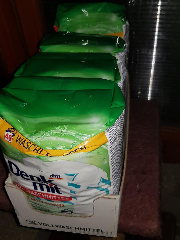 Jedná se o mycí a desinfekční prostředky, prací prostředky, stelivo, konzervy a kapsičky. Máme velikou radost, mockrát za dar děkujeme!!!!!!