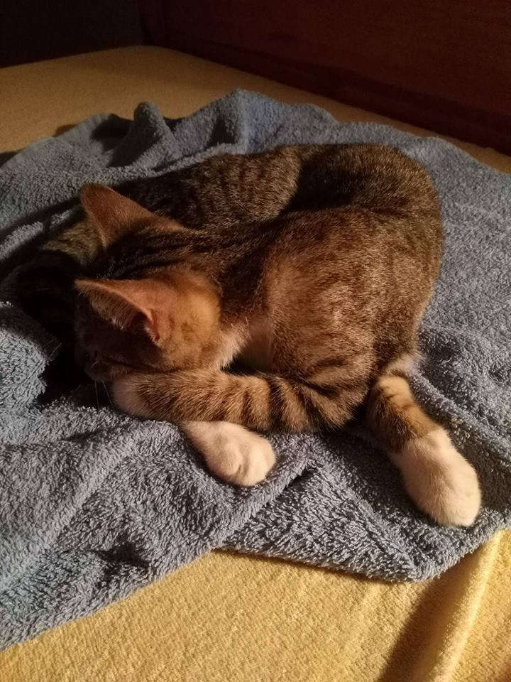 Dobry den ve Slunicku. Vcera to byly dva mesice, co jsme si od vas odvezli takove krasne male stvorenicko jmenem Polly. Celou cestu domu spinkala a pak radila, jak cerna ruka. Musela vsechno prozkoumat. Starsi kocicka ji prijala v celku rychle, ale i dnes jsou jeste boje, kdyz nema svuj klid. Polly je strasne ziva cica a tak dostala prezdivku Torpedo. Dlabe uplne vsechno, co ma, zpusobne chodi na zachod. Po nemoci si to osvojila velmi rychle. Behem jedineho dbe bylo vse v poradku. Zvladla i nasi dovolenou, kdy jsme byli 14 dnu pryc a hlidala ji kamaradka. A nejlepsi zprava n kobec. Stal se z ni neuveritelny mazel. Kazdy vecer, kdyz se divam na televizi, vyskoci mi na hrudnik a chce drbat. Klidne i pul hodiny 😉. Moc za ni dekujeme. Diky Polly je nas dum zase veselejsi. Mejte se hezky a pozdravujte Slunicka. Snad brzy najdou sve domovy.