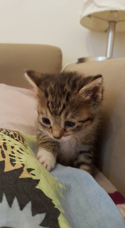 Bílomourovatá kočička, která byla nalezena v popelnici ve Štětí. Při příjmu vážila 305 gramů, měla zánět v očičku a trošku rýmu. Naštěstí nedalo velkou práci krmení z lahvičky. Polly se má k světu, hlasitě se na světě hlásí, nabaští se, vyčůrá a spinká. Je tak sladká. Pollynka krásně roste a je nyní připravena odejít do nového domova.