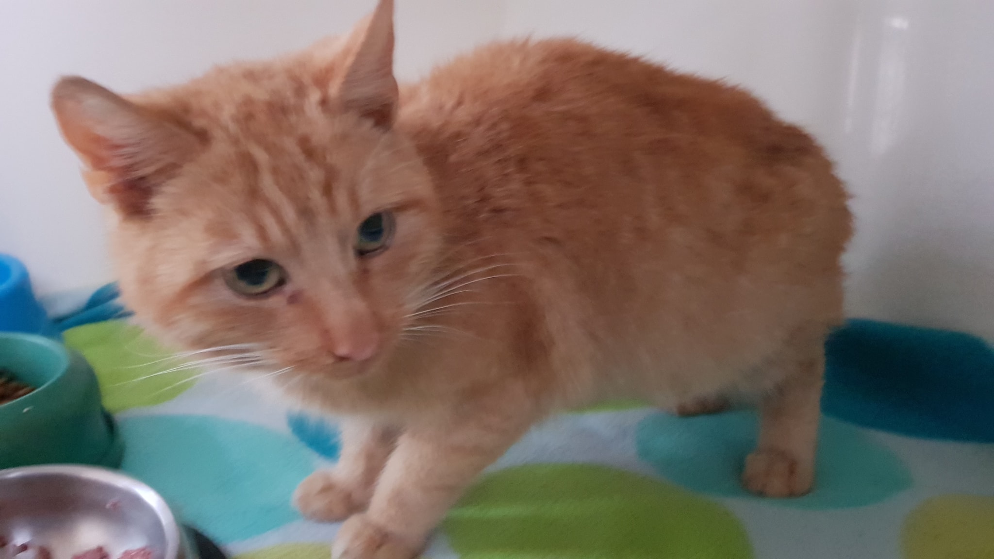 🔶Dnes byl přijat rezavý kocourek s velkým průjmem, s chybějícími horními špičáky, pořádným ušním svrabem, kontaktní, věk se nedá přesně určit – dva až pět let? Je již kastrovaný.