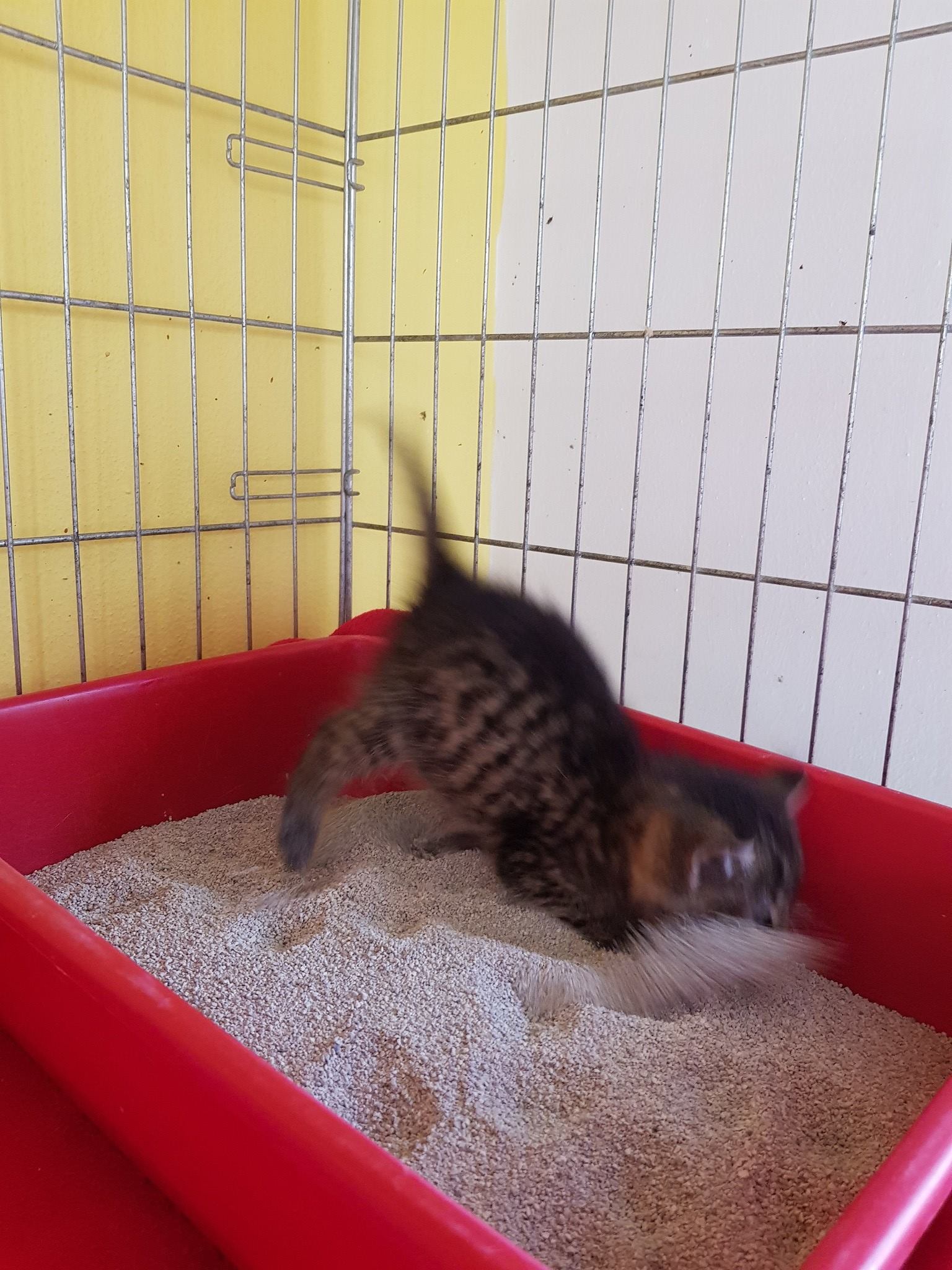 Příjem tří hubeňoučkých koťátek dnes po poledni. Koťátka byla nalezena zaměstněnci Lesní školky ve Vědomicích, když o polední pauzu se vydali porozhlédnout v areálu školky po houbách. U jedné brány, která se nepoužívá, našli promočenou krabici se třemi koťátky. Černobílá a mourovatá kočička se mají k světu, váží necelých půl kila. Poslední černé koťátko bylo celé studené, váží pouhých 240 gramů, je malátné, ale papá, je to též holčička. Koťátka mají celkově nízkou váhu, i když jejich věk je dle barvy očí minimálně šest týdnů. Tipla bych si, že původní majitel vyvezl samičí koťátka. Bíločerná holčička dostala jméno Kucinka, mourovatá Olivka a černá Andynka. Krabicová nadílka holčiček je nyní v kleci na vy¨hřívané dečce.