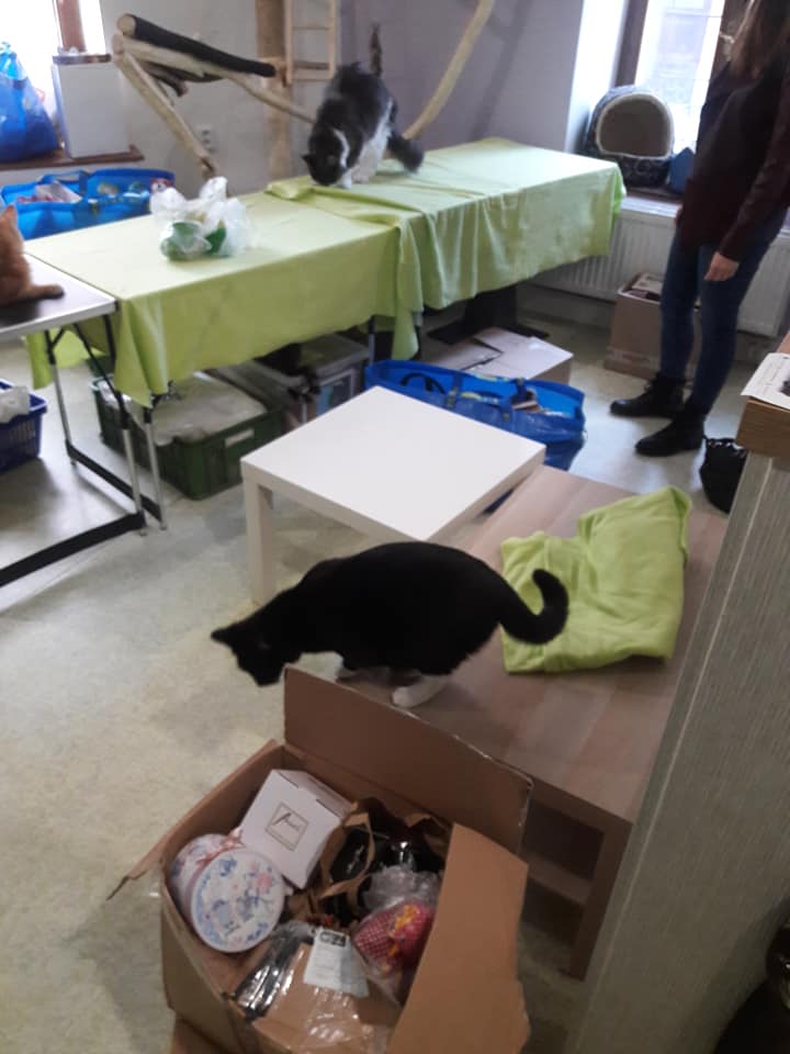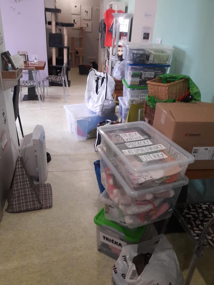 Přípravy na bazárek v kočičí kavárně U kočičích tlapek na Kladně v plném proudu.Těšíme se na Vás