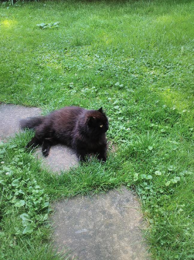 Na jaře jsme obě kočky našli celkem v pořádku, i když vyhublé, zacuchané a špinavé. Sice se zdržovali v blízkosti zahrady, ale po jidle utekli. Snažili jsme je alespon u jídla vyčesávat a umývat, jakmile se najedli zase zmizeli.