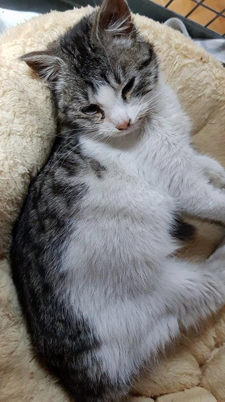 Náš nejmladší dobrovolník Adámek šel s dědečkem na procházku. Mezi poli se k nim přidalo ušmudlané, asi pětiměsíční koťátko. Podle svého nálezce dostala jméno Adamka. Adamka je vděčná kočička, kterási užívá tepla. Zatím se nemůže dojíst a dopít. Má trošku průjem.