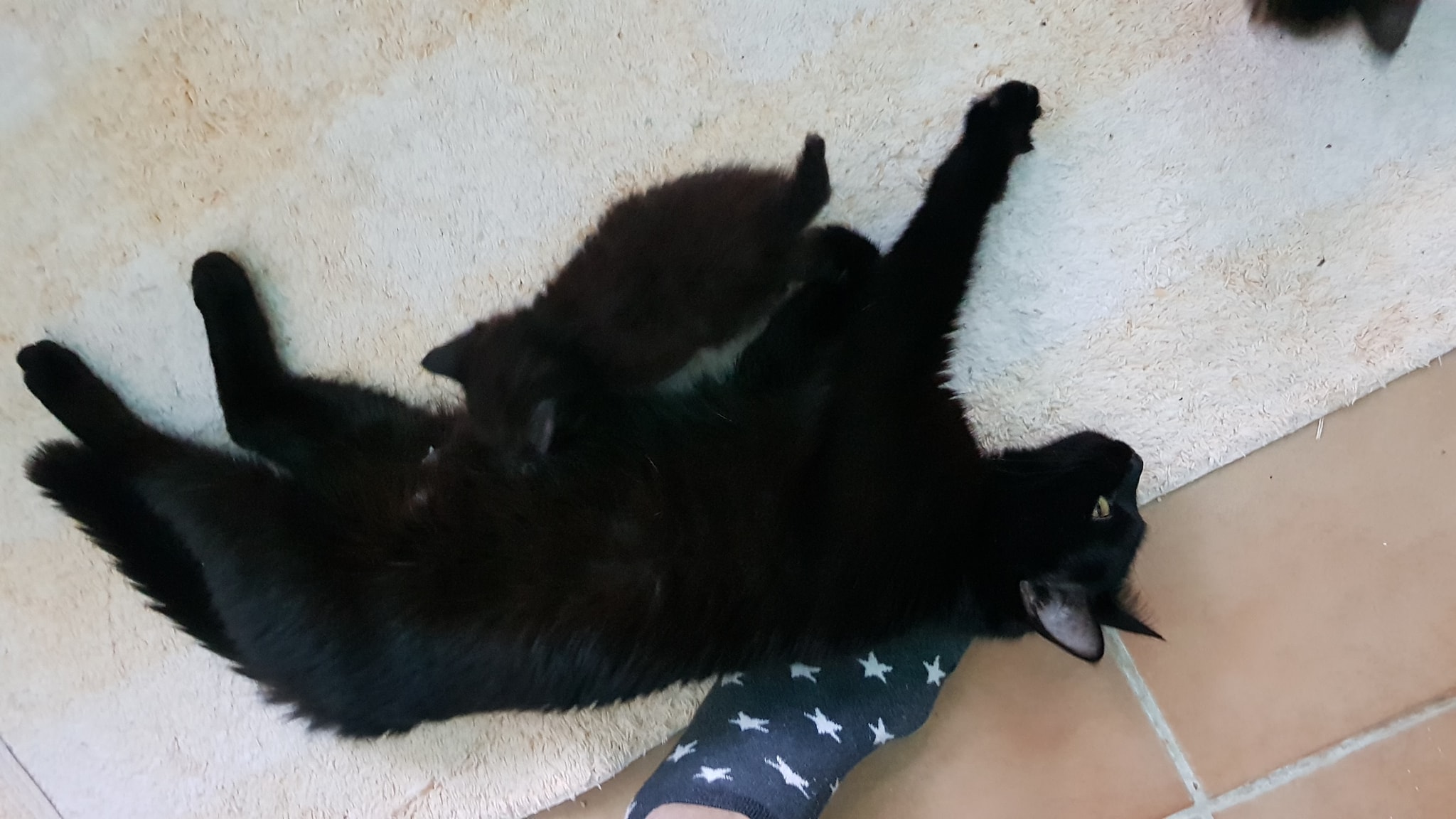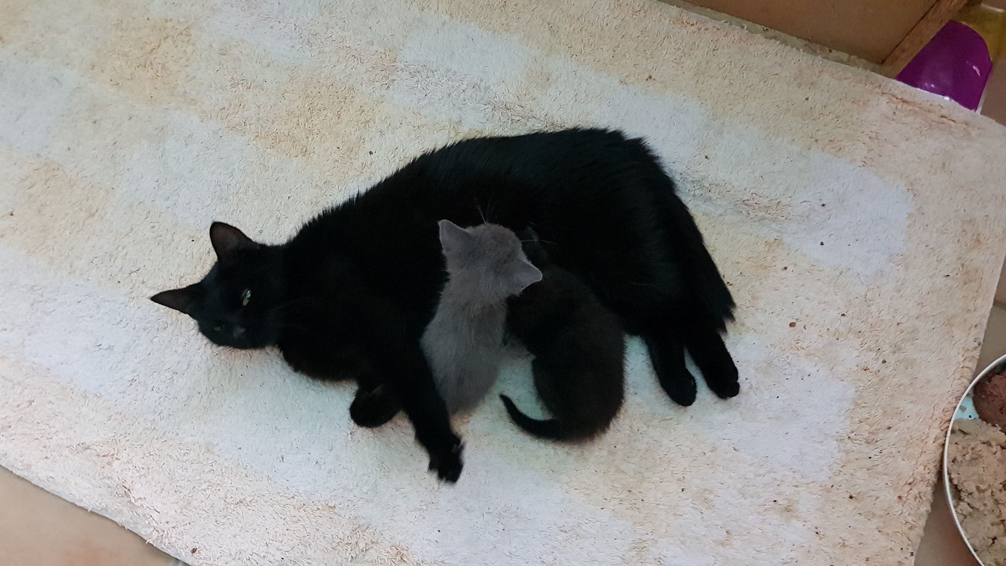 Přestala jíst stejně jako maminka Oktáva☹️, ale naštěstí alespoň trochu kojila. Koťátka Polníček baští naštěstí sám, malá Lajka též, zhubla nám Doubravka a Silver je takové zvláštní kotě….Bouřka užívá antibiotika a dnes byla nasazena i jejím třem koťátkům. Jediný Polníček se zdá zcela zdráv, a ten je adoptovaný😀