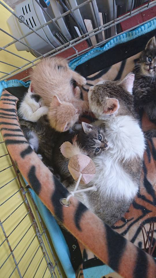Kočička Rosnička adoptovala koťátka z Mnetěše. Je sice už po kastraci, ale ujala se pěti hubených osiřelců – Monny, Melody, Melanie, Manfreda a Medoxe. Jen se koťátka nedočkají mateřského mlíčka. Koťátka hodně baští, začínají se zakulacovat, očička se jim čistí, zánět ustává. Jsou nádherní. Po nové mamince okamžitě chňaply a nehnou se od ní.