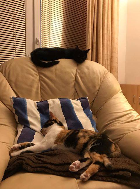 .Dobry den vsem do Slunicka! Posilam Vam fotky Cikitky (u vas Sanelky) a Cibulky. Holky uz si na sebe krasne zvykly a stastne nam demoluji spanek, byt a vsechny veci co v nem mame. 🤣 Mala Ciba je stale torpedo a klidnou Cikitku poradne prohani, ale to je dobre, protoze Ciki diky tomu dela celkem hezke pokroky. Hned tak ji uz neco nevydesi a neutika pred nami a, z toho mam extra radost, uz se chodi mazlit i sama od sebe! S bojacnou kocickou je sice trosku vic prace a chce to cas, ale ty pokroky stoji za to a radost z kazdeho male krucku je paradni!!! 🙂 💪🙏