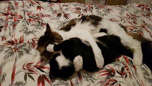 SKITTLESNIČKA A JEJÍ STARŠÍ „SÉGRA“. JE VIDĚT ŽE HOLKÁM TO TAM PATŘÍ. DĚKUJEME ZA SKVĚLOU PÉČI….Krásný den všem ve Sluníčku. Po delší době zasílám pár fotek malé Skittlesničky. Zatím stále čekáme na kastraci, dle pana doktora je pořád moc malinká ale už máme 2,4kg. Takže ještě tak měsíc a už budeme moct jít. Z malé se stal pěkný ďáblík, hlavně když nejsme doma. Pěkně si dovoluje na velkou ségru, ráda se s ní honí a ve všem se po ní musí opičit. Ozvu se zase za měsíc. Pošleme potvrzení o kastraci a samozřejmě i informace jak to vše zvládla.