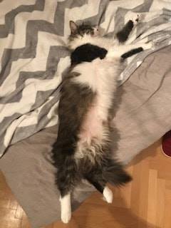 Posílám další pozdrav za Doriana. Zase o něco vyrostl, zmohutněl ale i tak se chová jako přerostlé kotě. I velká postel mu je malá a sem tam spadne, protože neustále spí na kraji a na zádech roztažený. Tuším když běhá tak jeho dupani slyší i sousedi pod námi moje první kočka Freya byla několik mesicu “nemocna”, kozni problémy. Už je v poradku ale je na speciální hypoalergenni stravě. Nedaří se mi je krmit zvlášť takže stejné granule má i Dorian. Chutnají oběma jen jemu dávám zvlášť i “mokrou” stravu, šunku, maso. A potom co stihne ulovit ze stolu když se na sekundu otocime, jak jde o jídlo je rychlej. Na kvalitě krmeni se projevila i srst, je krásně chundelatej a známí pořád hádají že které rasy pochází, typy jsou Mainska mývalí, Norska lesní a Ragdoll ale hlavne že je zdravý a šťastný. Už ted se tešíme jak bude reagovat na první sníh u nás a vánoční stromeček posílám fotky z jeho činnosti v 80% jeho dne a videa kde aportuje(umí nosit i pingpongovy míček!) a jak se naučil vylézt po žebříku na synovu novou postel.