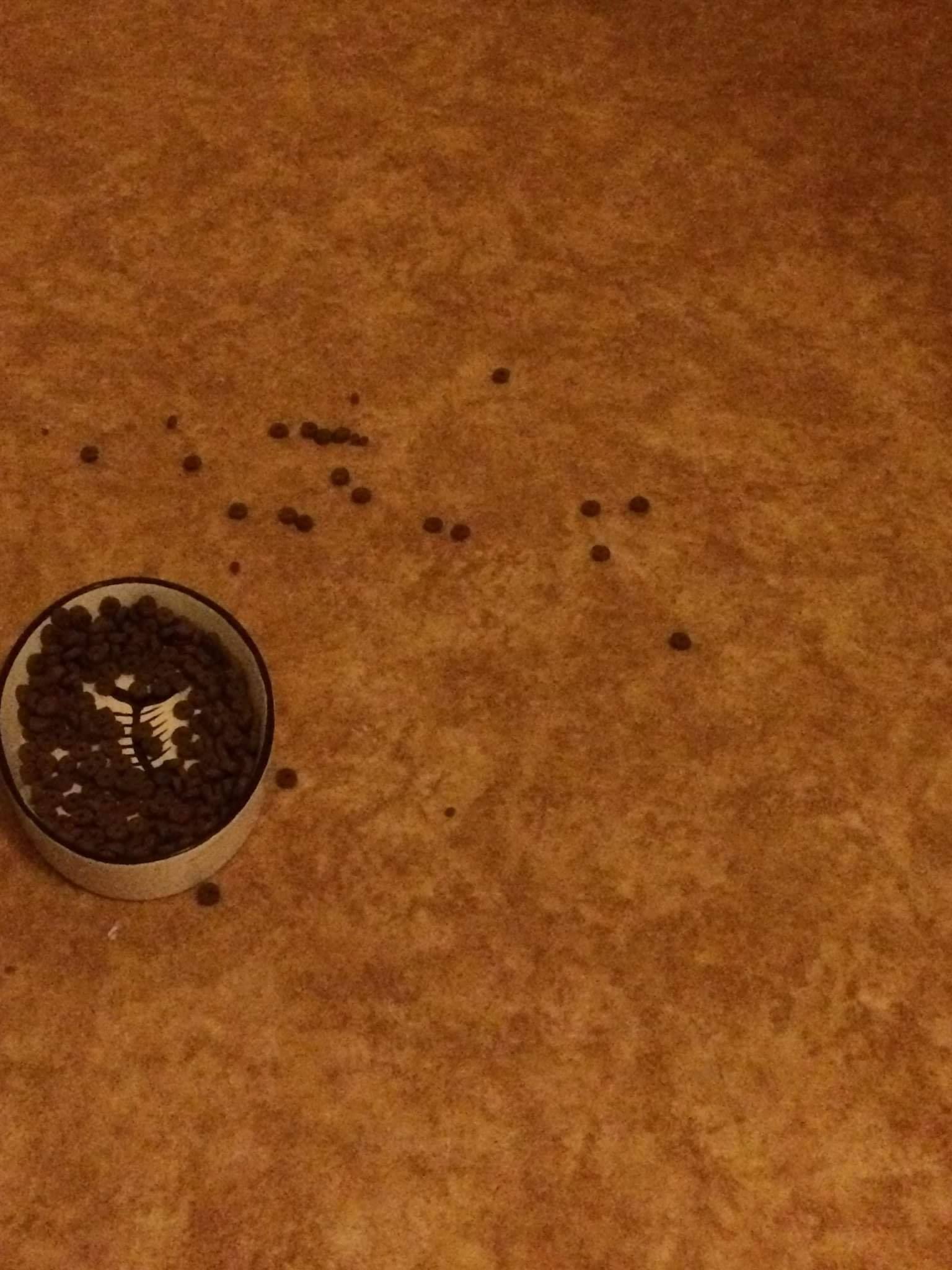 Takze pravidelne nam papka co je pro nas důležité …. dneska jeho miska na granulky vypadala nejak takto