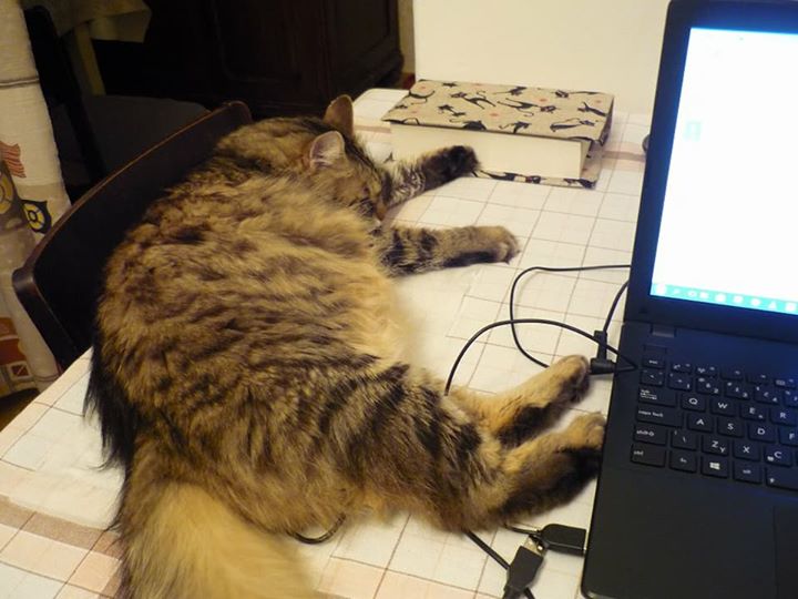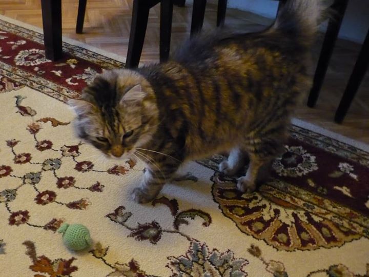 všechny vás zdravím a děkuju za novou šantovou myšku, co jste mi poslali po obsluze z Plechárny. Teď v zimě se povaluju u topení anebo na stole – ubrus je podložený dekou a to je prima poleženíčko. Obsluha sice brblá, že stůl není pelech a cpe mi tam talíře nebo počítač, ale já se nedám. Nakonec, kdyby se mi podařilo překousat ty kablíky, tak bude mít po žížalkách. Přikládám pár obrázků, obsluha fotila jako divá, ale většinou jsem byl rychlejší a tak vzniklo hodně mouratých šmouh a málo obrázků. Doufám, že dnes hodně sluníček odjelo k někomu domů.