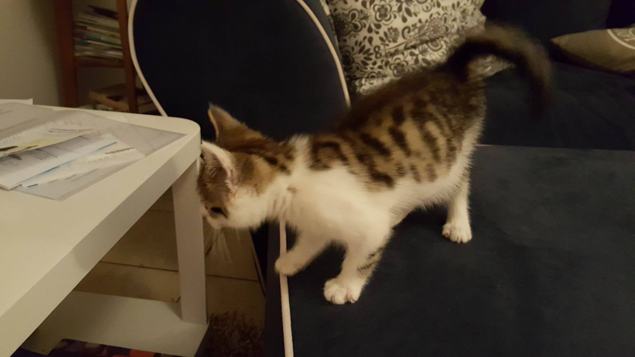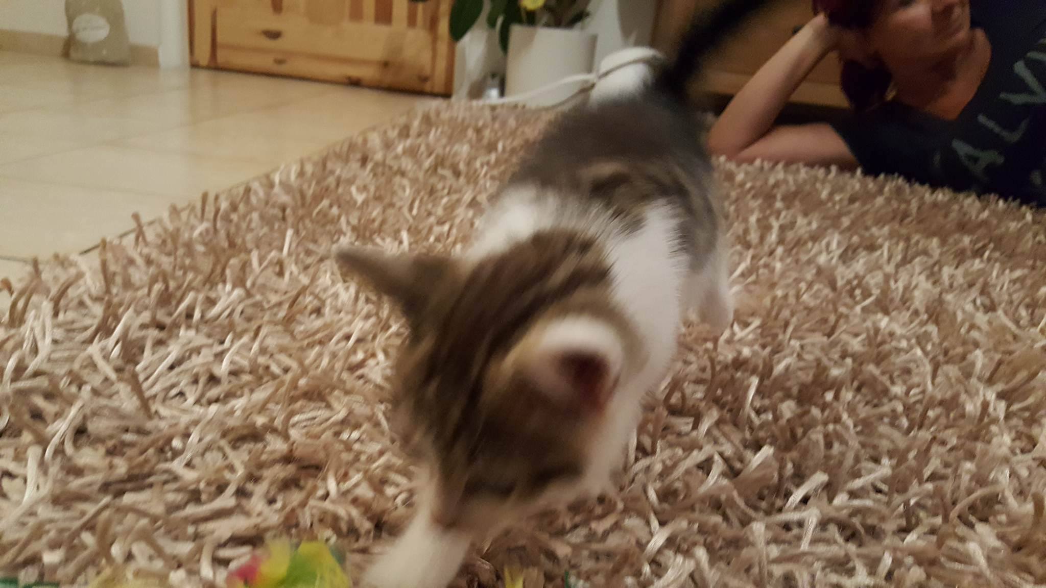 Už se trošku srovnala se změnou domova😃🙂 Jídlo pití zvládá, záchodek ještě nevyzkoušel ale už ví kde je. Teď už spinká 😴…🙂
