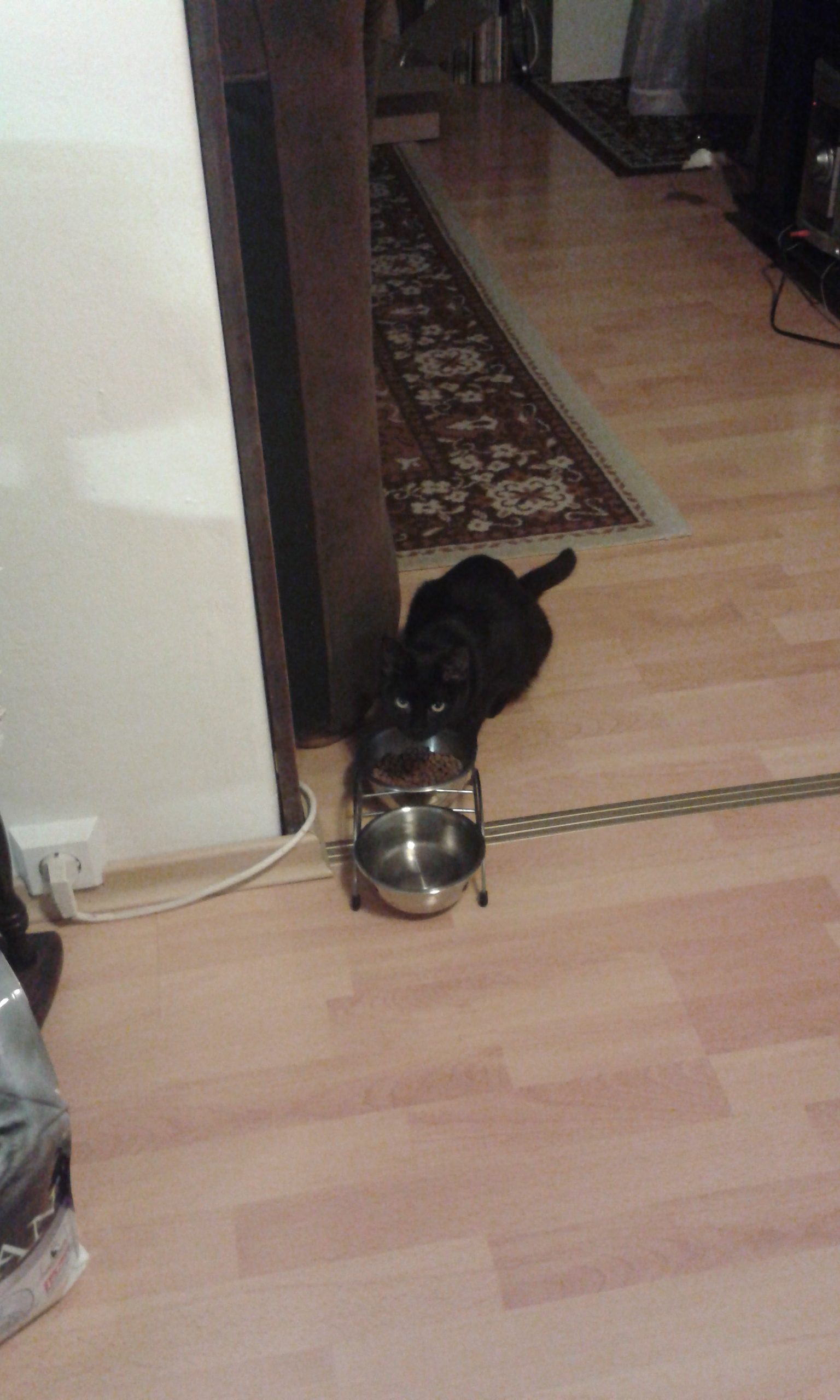 posíláme pozdravy od Sutinky. V noci spí u nás v ložnici na pelíšku cca 2 metry od nás a dneska se dokonce přišla najíst až k nám, přičemž miska byla cca 1,5 od nás. Přes den spíš odpočívá, ale večer zkoumá a šmejdí. Je to pořád plašanka, ale pomalinku se otrkává. Posíláme fotky bez jakéhokoliv zvětšení 🙂