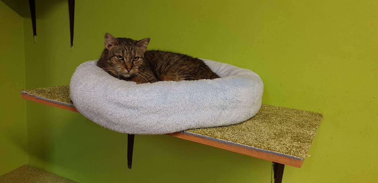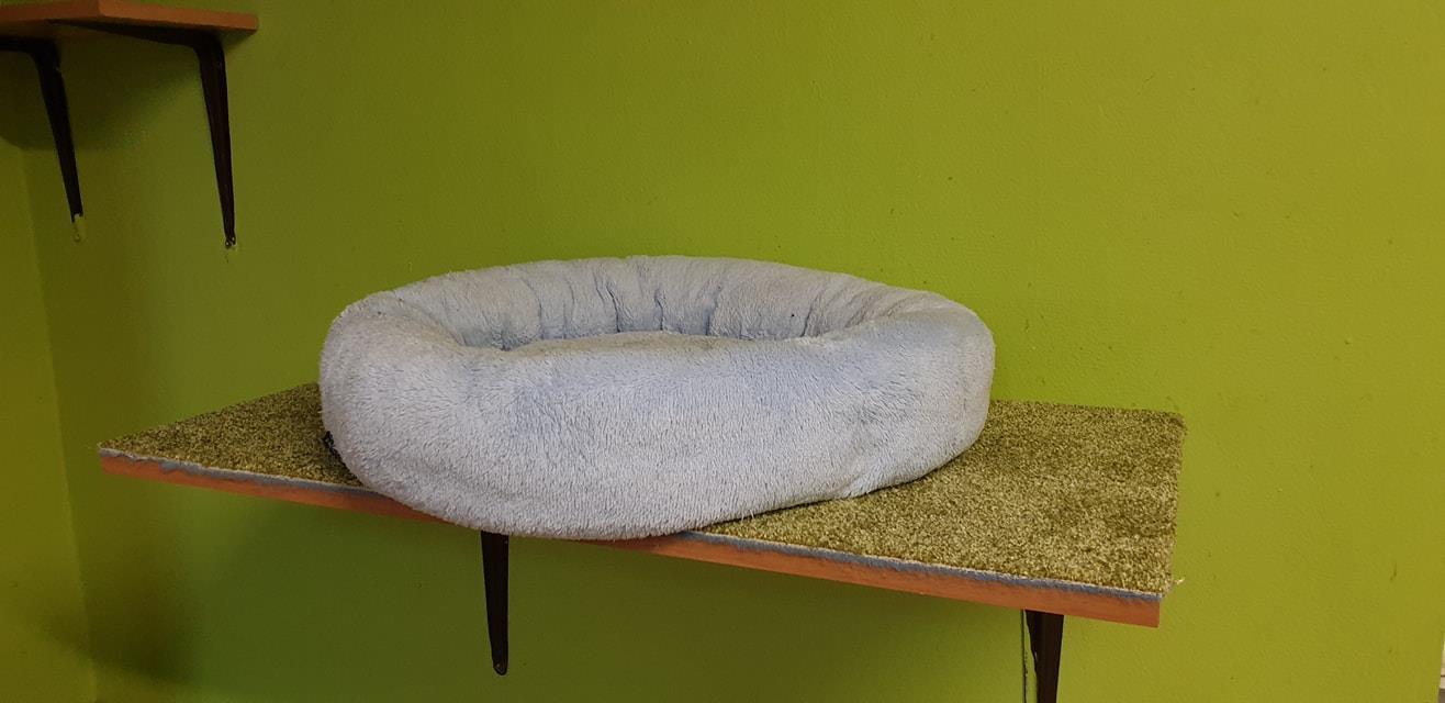 Právě jsme dokončili (tedy skoro, chybí trocha koberce, takže zbytek zítra) výměnu koberečku na poličkach. Kočičaci na nich rádi odpočívají, ale plní i protiskluzovou funkci když se po nich prohánějí.