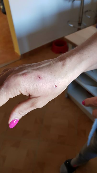 Kočička však usoudila, že její odchycení nebude jen tak a když jsem jí ještě trochu „oblblé“ po narkóze chtěla dát Broadline za krk, aby se odčervila a odblešila, pěkně mě pokousala, prý na památku. Kočičce se daří dobře, dokonce se hned po kastraci najedla. Za pár dní bude vrácena na sídliště.