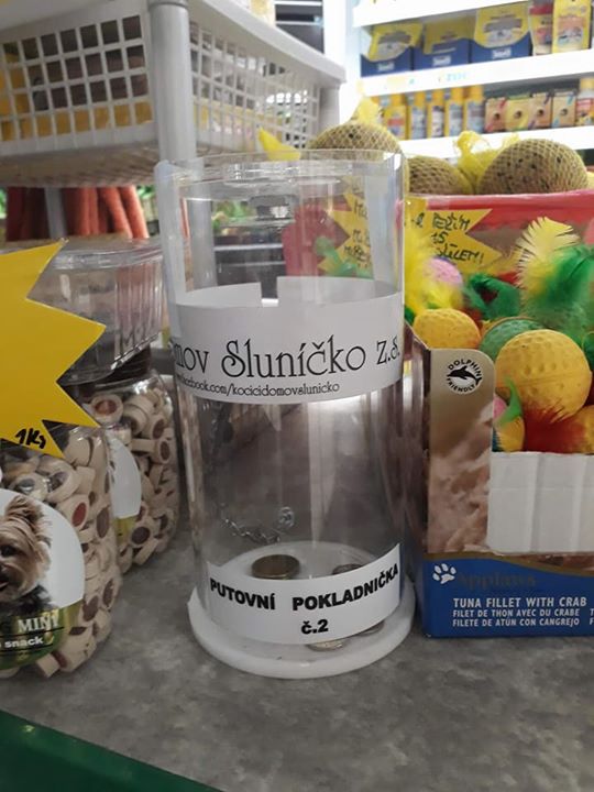 Také nás můžete podpořit v prodejně Akvazoo Brantl S. R. O. v Kladně. Je na Americké ulici a naše příznivkyně dohodla možnost umístění sbírkové kasičky v prodejně. Chvíli trvalo vyřídit všechna povolení, ale dílo se podařilo.