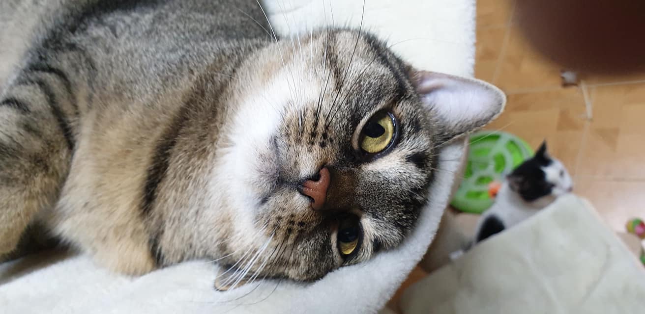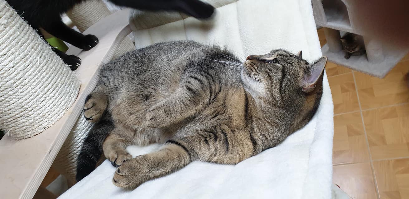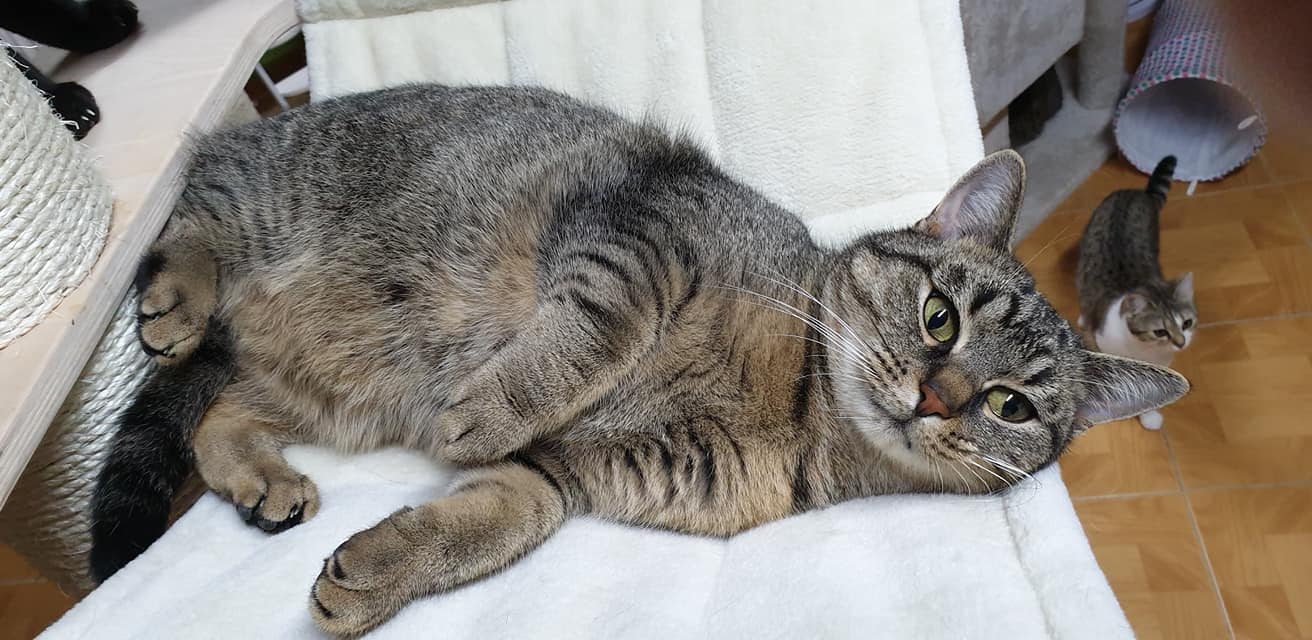 mourovata kočička, kterou spolu se sestřičkou a dopisem někdo zanechal v přepravce a v krabici před pár dny u našeho ploto. Obě holky, se krásně zabydlely, jsou extrémně společenské a mazlive. Užívají si lidské i kočičí společnosti, každá trochu jinak. Nejsou na sebe vůbec fixovane, jedná druhé kupodivu nechybí, kamarádů mají u nás dost. Jen těch lidských rukou na mm azleni je málo 😉