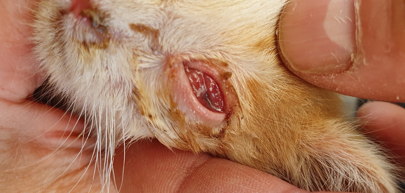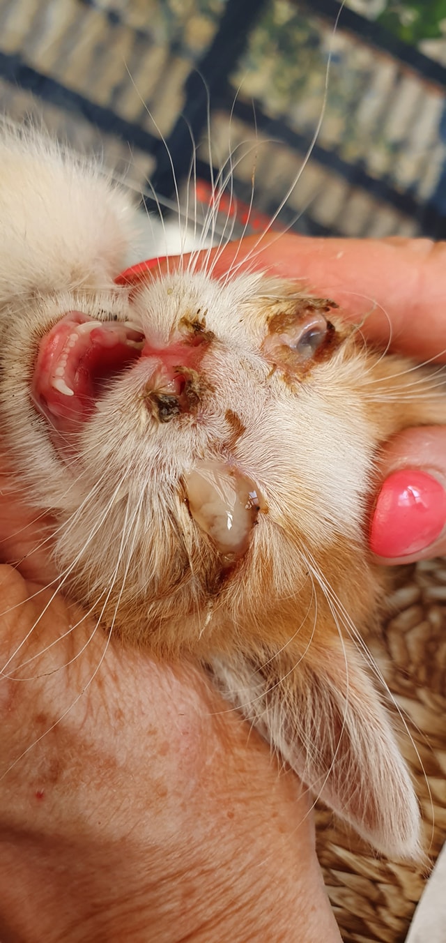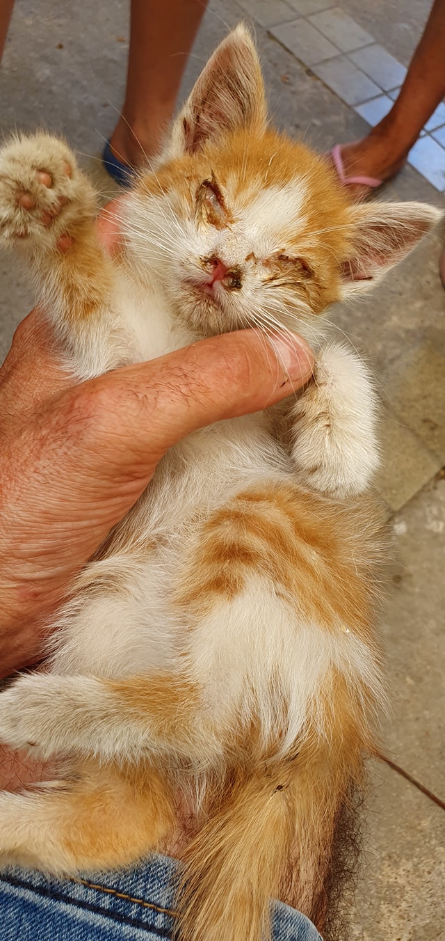 🔸 Malý klučík z Úštěku, nalezen na parkovišti u jezera Chmelař. 415g, takže mu tak 1/3 hmotnosti chybí !! Věk cca 6 týdnů, hubený, dehydrovaný, tělíčko plné muších larev, svrab.