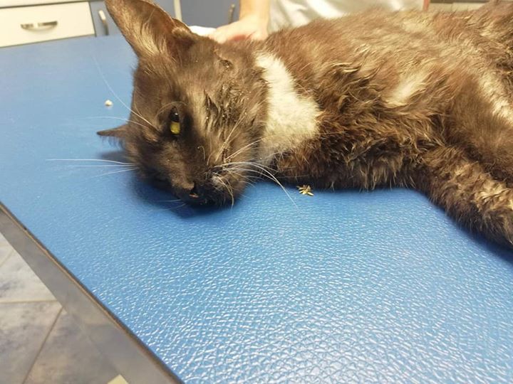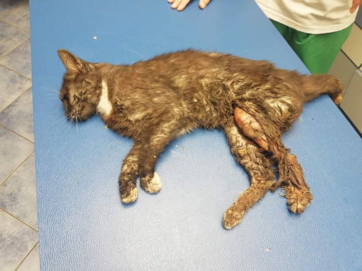 V současné době je jeho stav velmi kritický. Je těžce podchlazeny, až apaticky. Ma utrzeny sval, rána byla plná muších larev. Dostává silne opiaty aby netrpěl bolestmi. Je dehydrovany, jak celkově vypadá je vidět na videu. Během chvíli ještě zveřejníme a okolnosti a video z nálezu a ošetření.