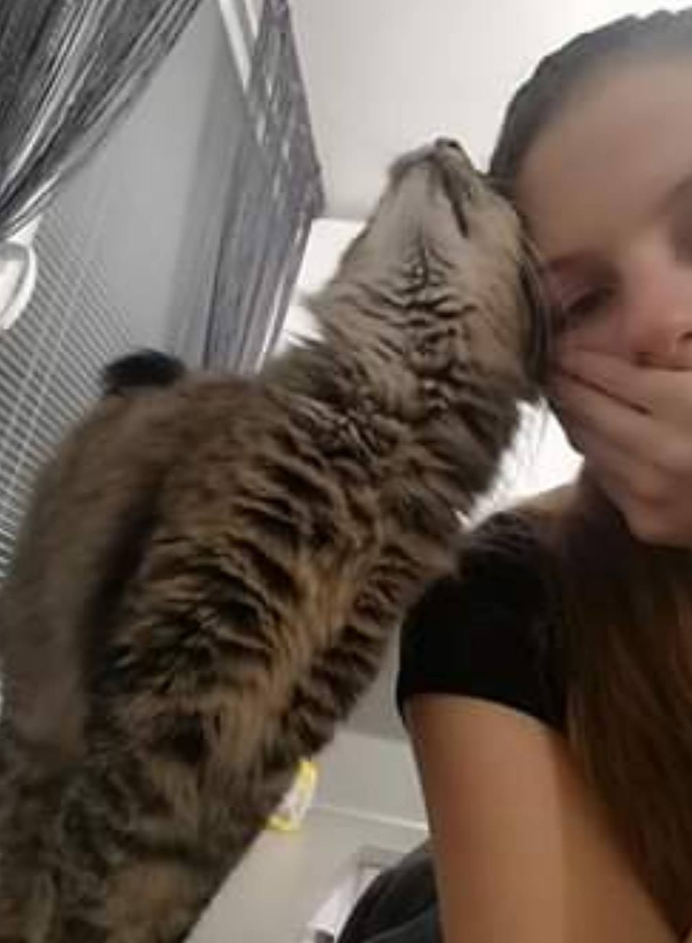 Tak jsme zjistili, že Ronja má ráda všechny, ale naprosto nenávidí přítomnost dětí. Chudák bráška se jí pokaždé snaží pohladit, ale jen co přijde do bytu tak ronička syčí jak praštěná, ale naštěstí neútočí. Občas dělá věci které nechápu, například si do pusy vezme jídlo a hodí si ho do misky s čistou vodou, nebo mi ho roznasi po celém bytě. Nějak ji to nemůžu odnaučit a tak uklízím jak mourovata. Ale naštěstí jsme šťastný, já jsem šťastná že ji mám a i ona mě dává dost najevo že mě miluje a je jedno jestli je zrovna den nebo tři ráno 😀😍