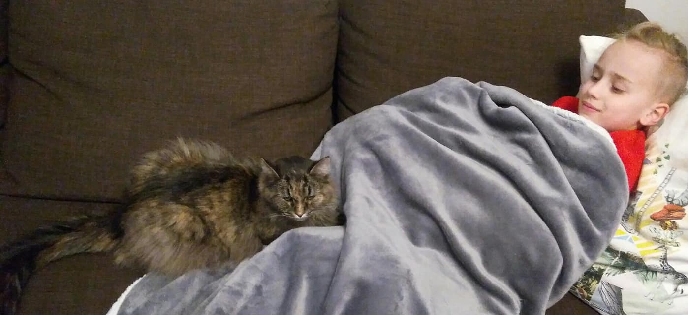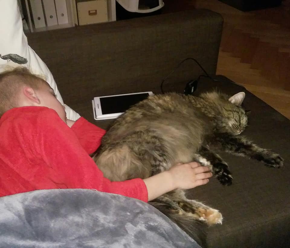 Tak zasílám první info o Grácii, nyní vlastně Mie. Je to strašně mazlivá kočička a pořád na nás vystrkuje bříško, ráda si ho nechá hladit. Oblíbila si syna a ráda s ním spinká.